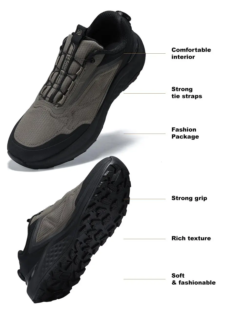 Baasploa Men Outdoor Sneakers Rotating Button Trail Running Shoes Male Comfort Soft Trek Hiking Shoes Non-Slip Wear Resistant