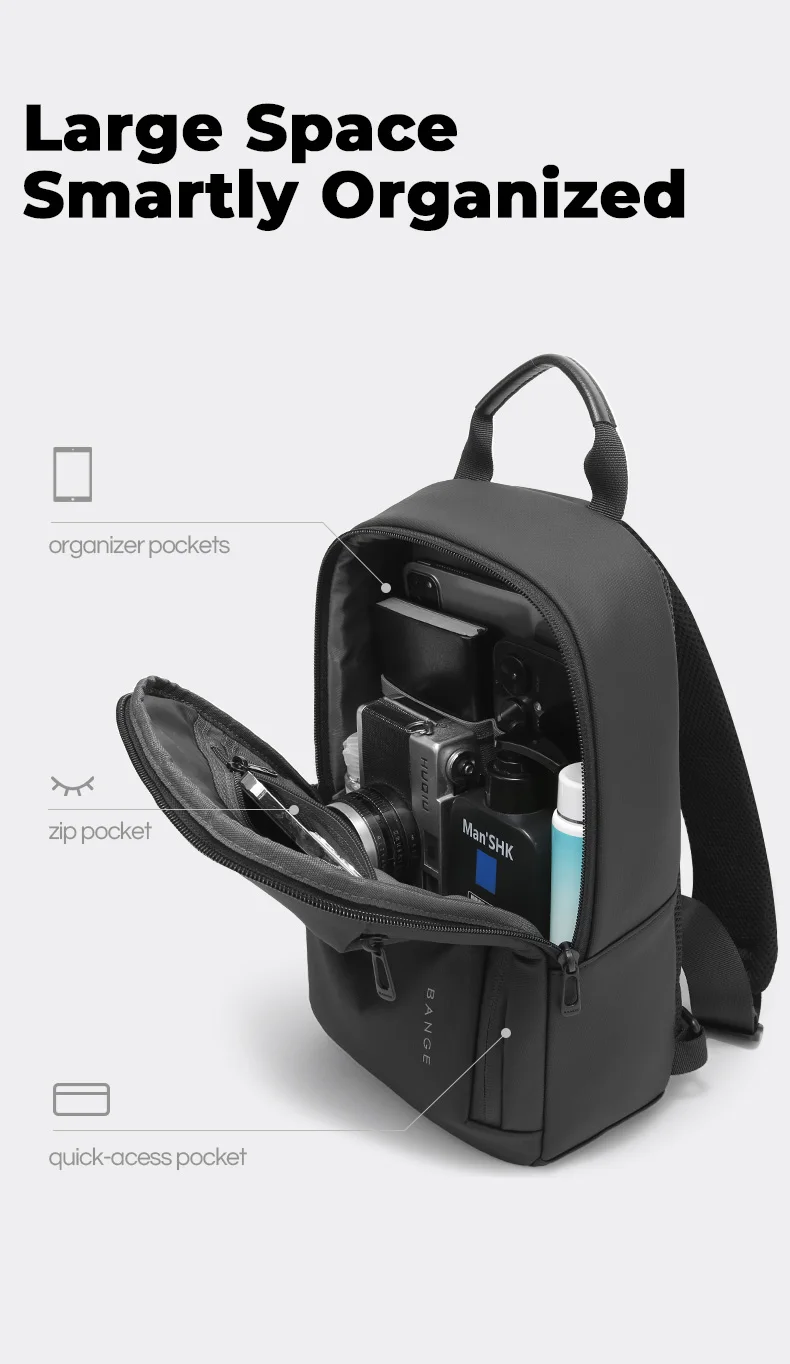 Bange Lightweight Everyday Sling Chest Bag Waterproof Minimalist Ergonomic Crossbody Bag for Men
