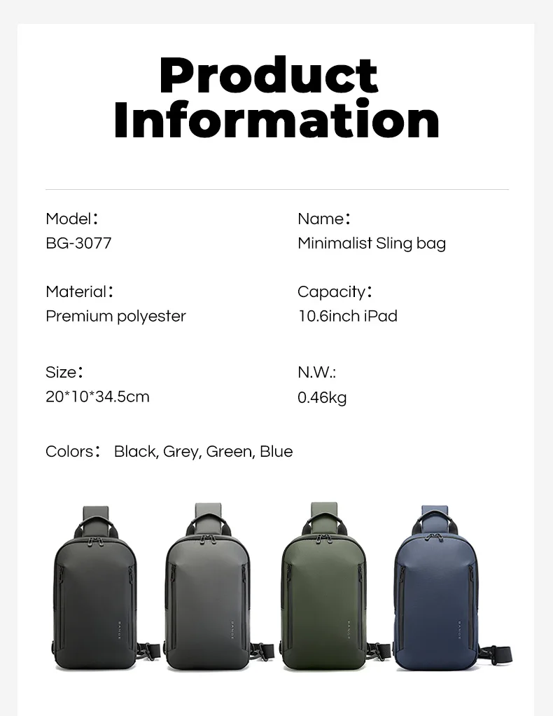 Be the first to review “Bange Lightweight Everyday Sling Chest Bag Waterproof Minimalist Ergonomic Crossbody Bag for Men” Cancel reply
