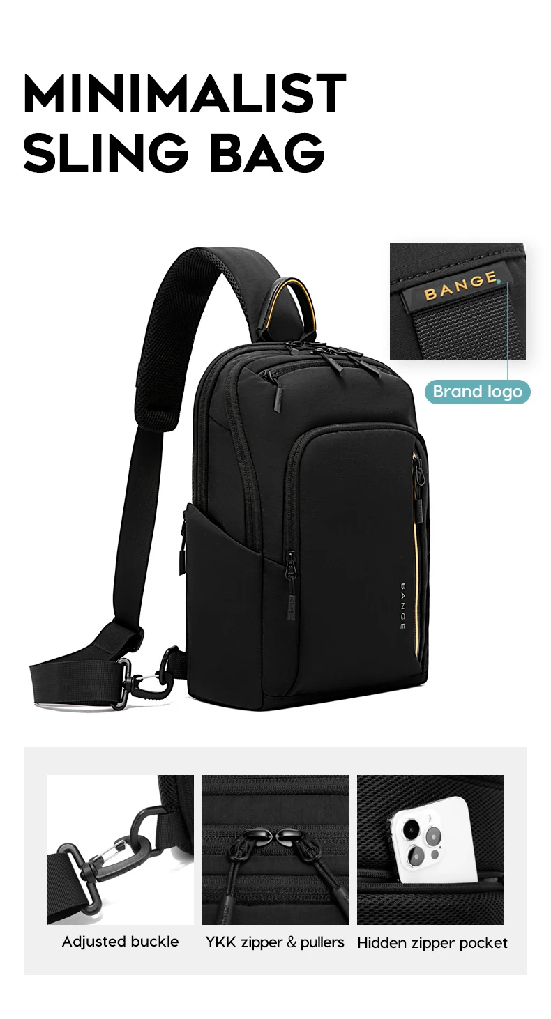 Bange New Trending Minimalist Waterproof Crossbody Bag Lightweight Ergonomic Sling Bag for Commuting & Daily Use