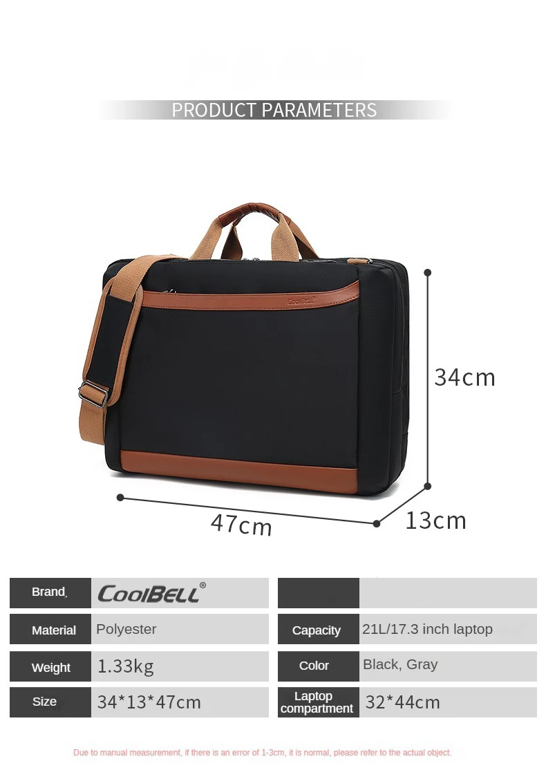 CoolBell 21L Waterproof Multifunctional Men Backpack &Shoulder Bag& Handbag 17.3 Inch Notebook Backpack Laptop Bag 17 Nylon Black Gray