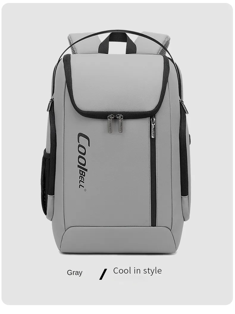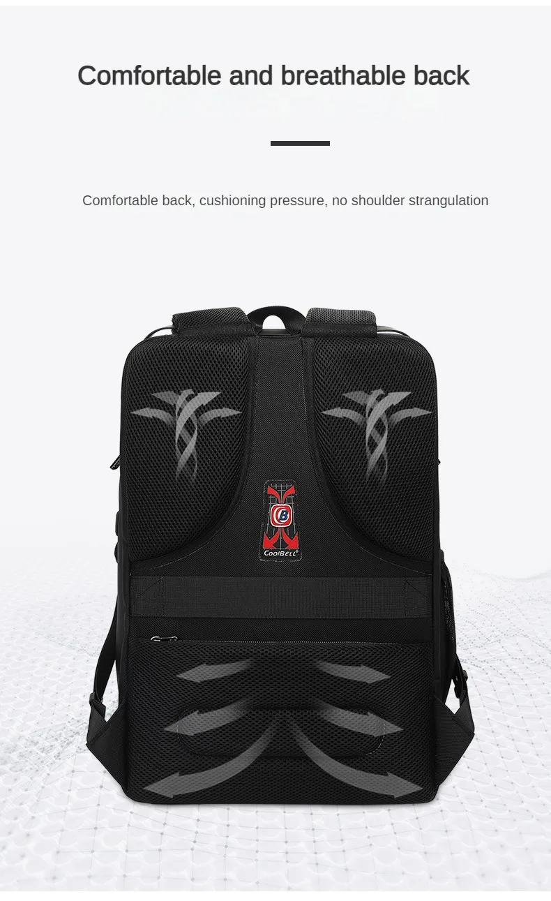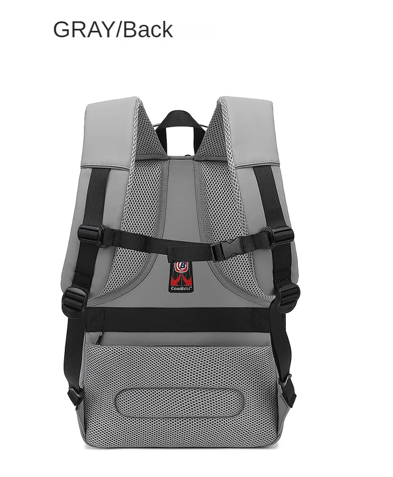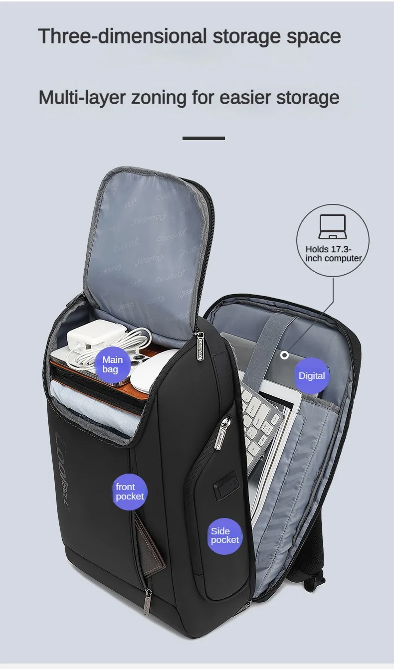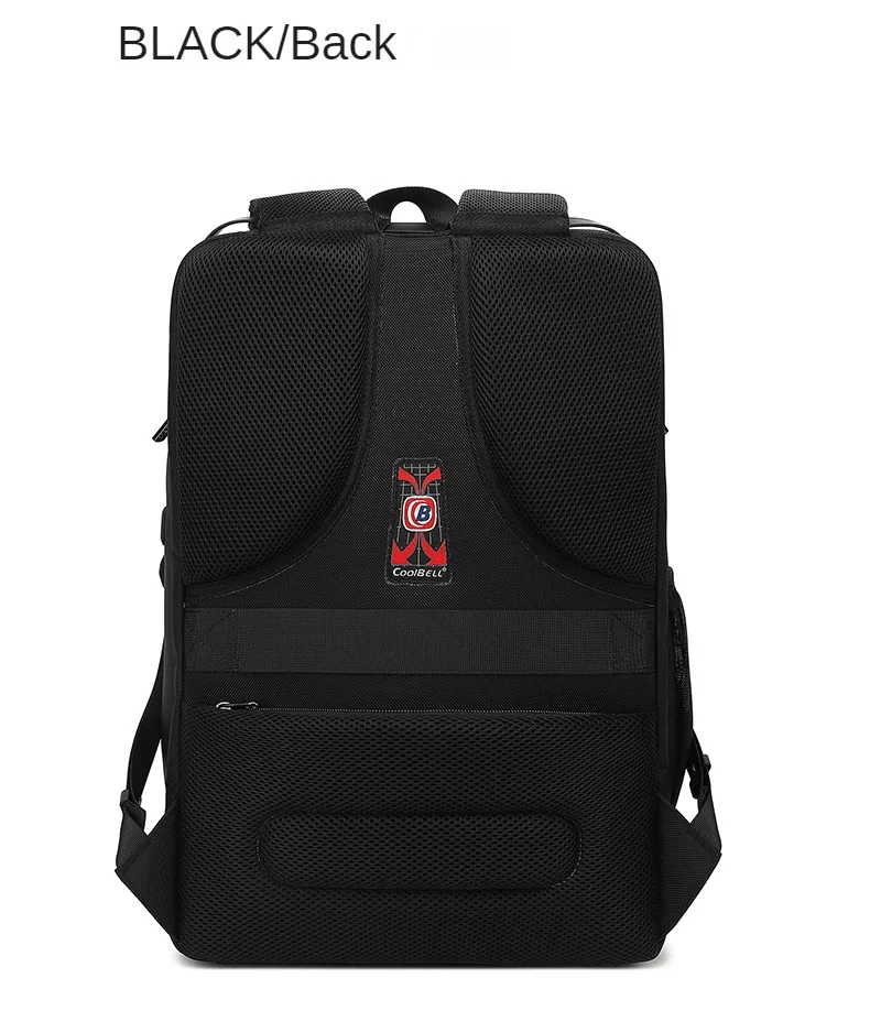 CoolBell 27L Large-capacity Waterproof Men Backpack For 17.3 inch Laptop With External Type-C USB Charging Port, 180° Opening