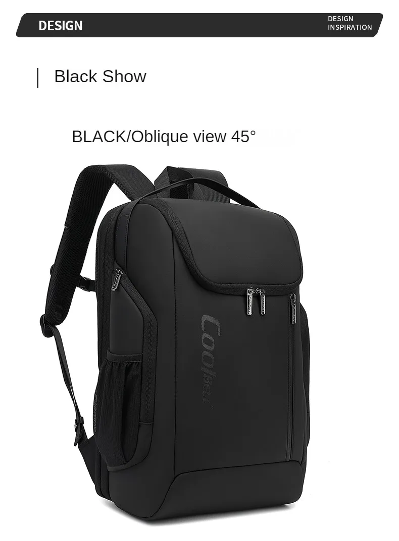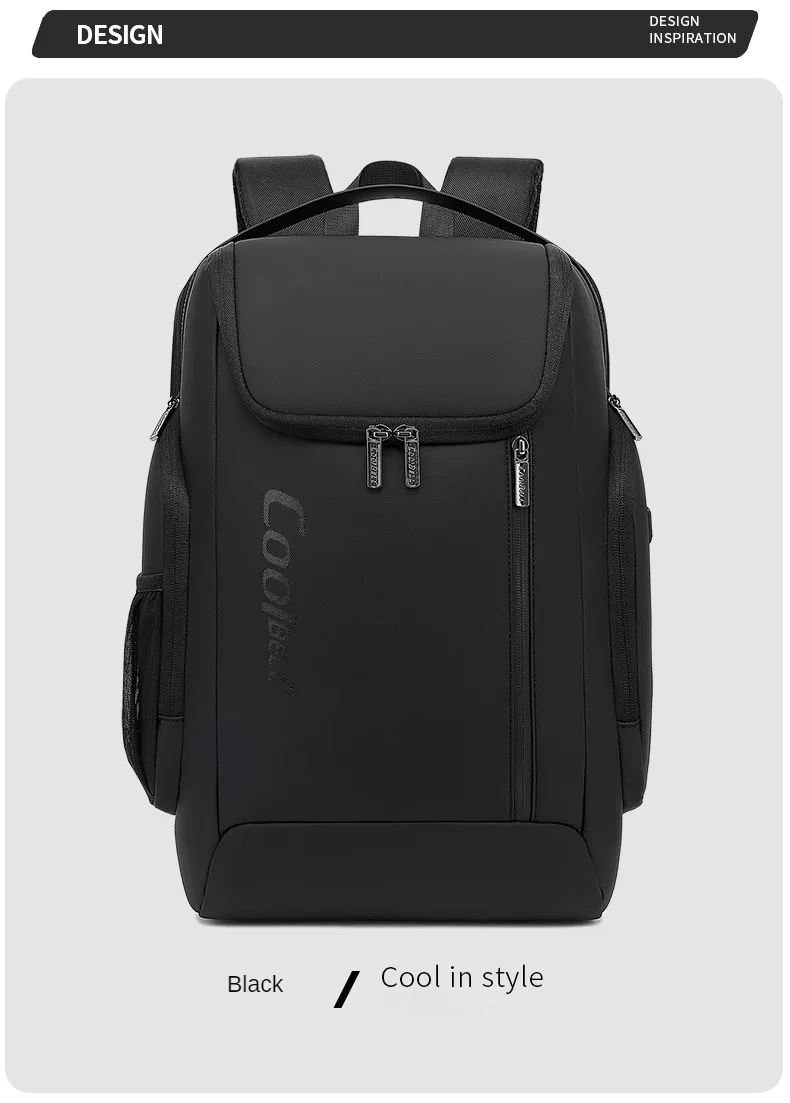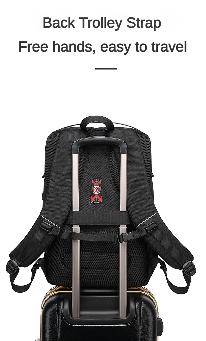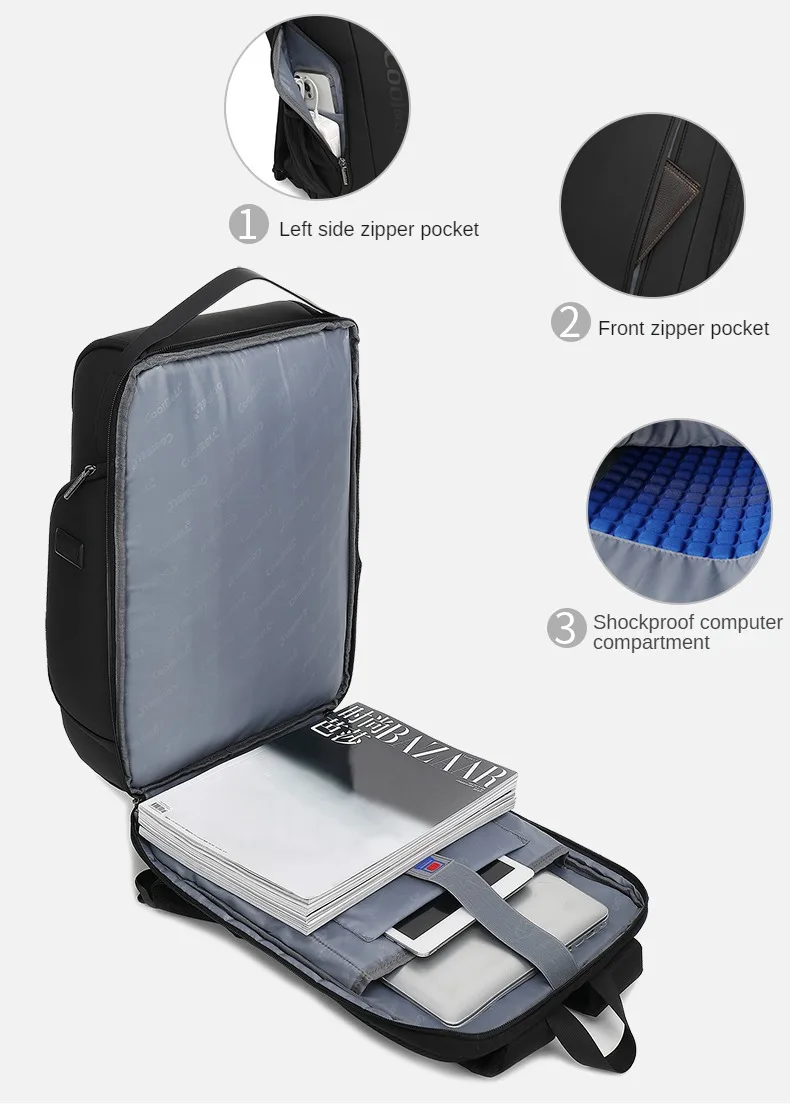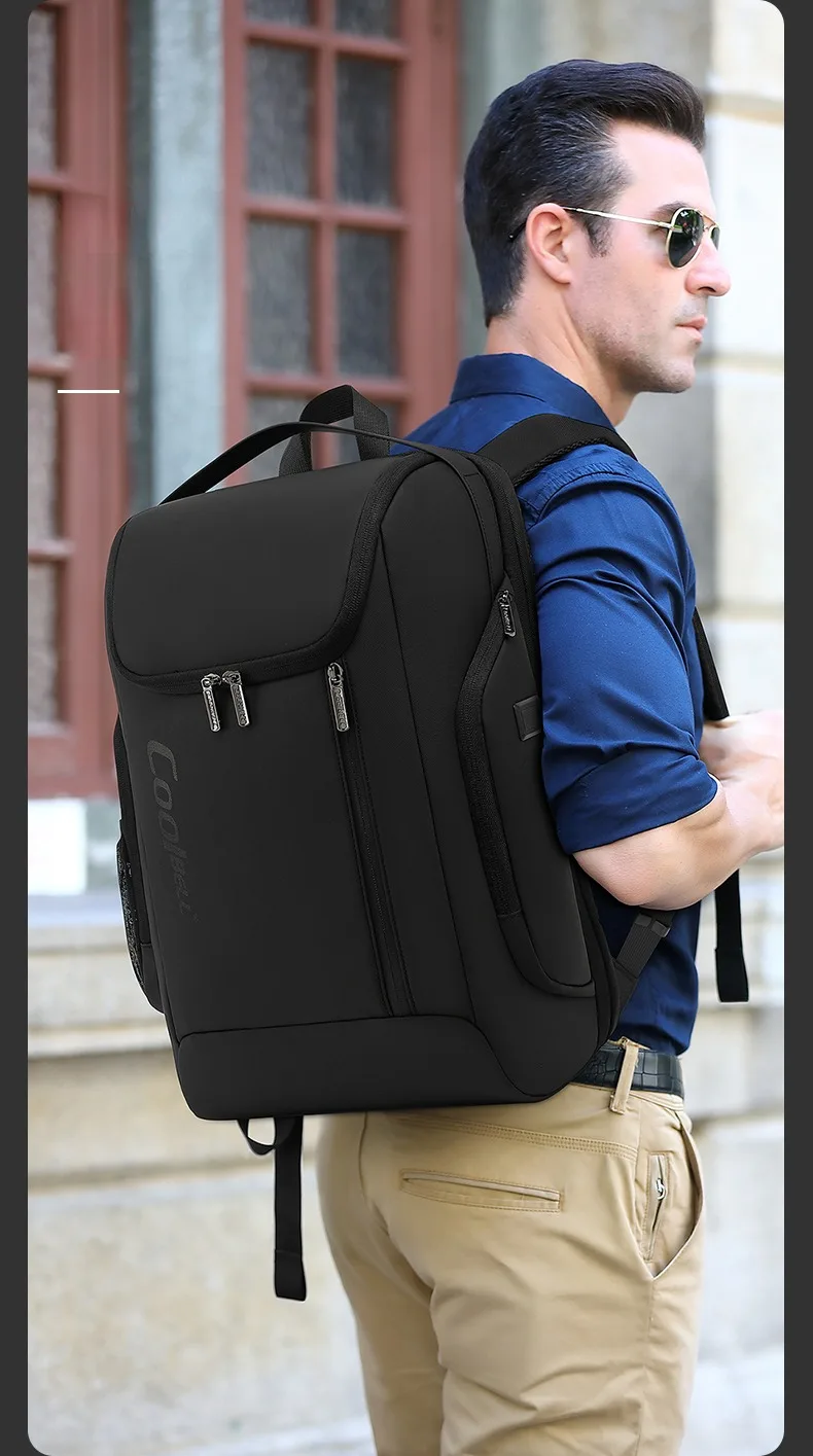 CoolBell 27L Large-capacity Waterproof Men Backpack For 17.3 inch Laptop With External Type-C USB Charging Port, 180° Opening