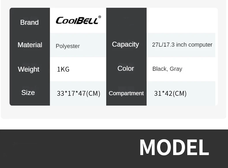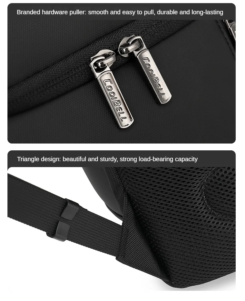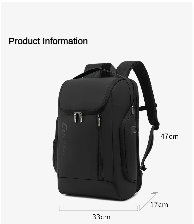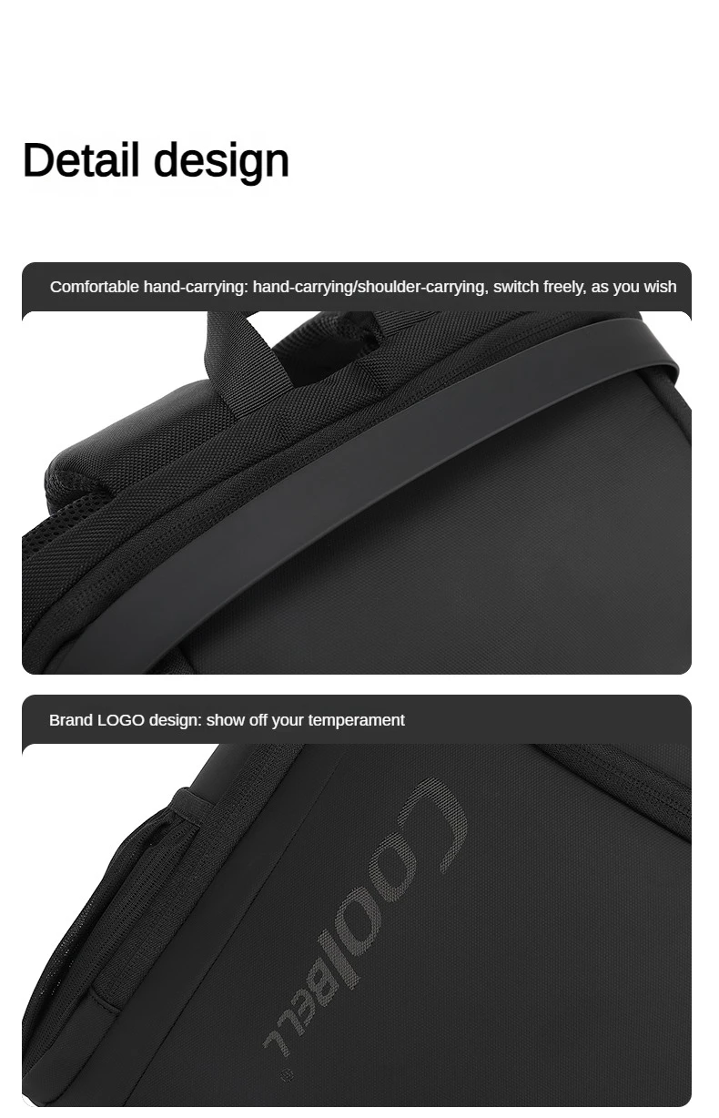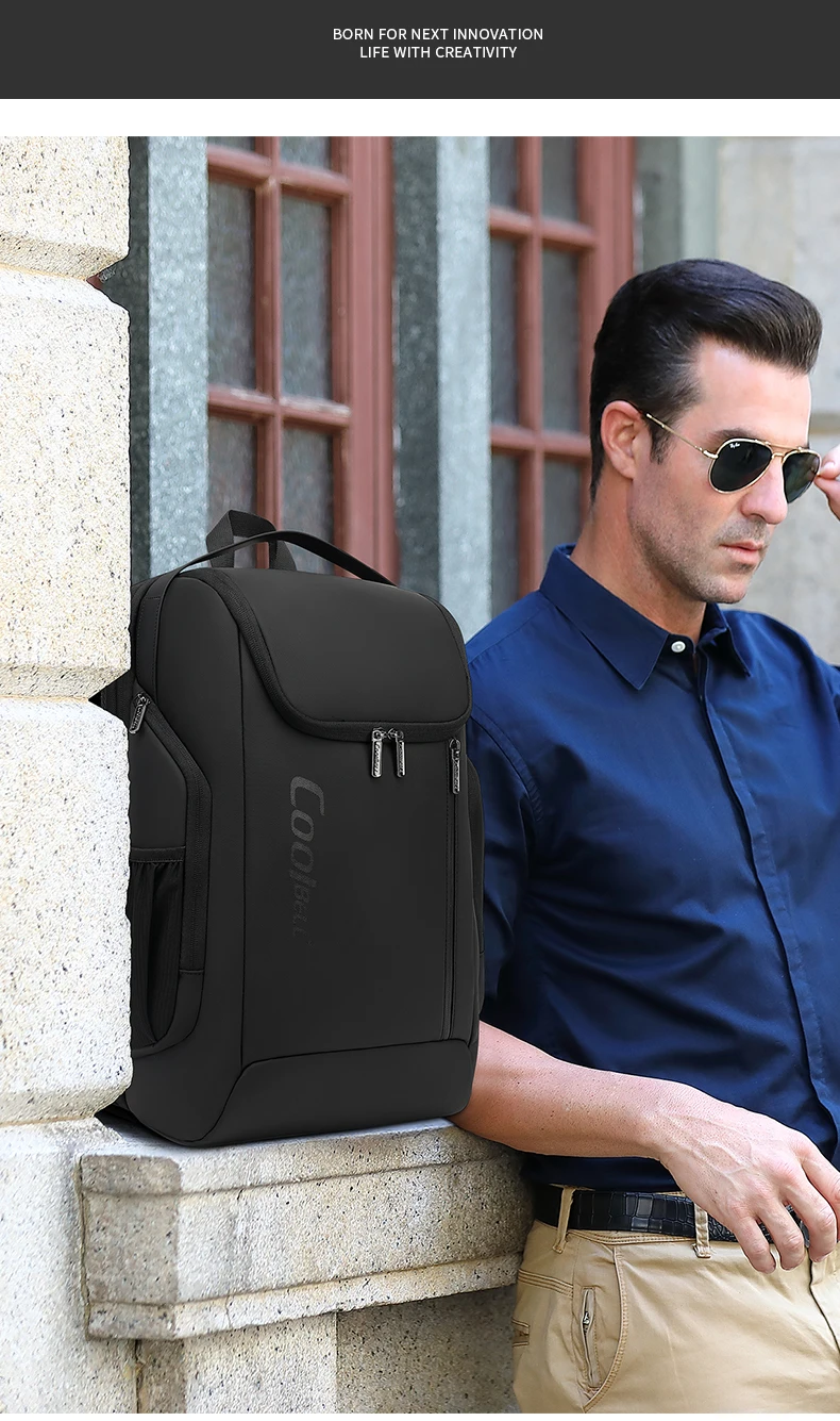 CoolBell 27L Large-capacity Waterproof Men Backpack For 17.3 inch Laptop With External Type-C USB Charging Port, 180° Opening