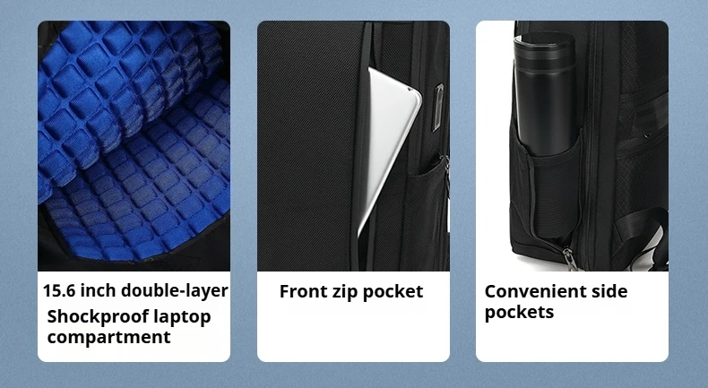 - Capacity: 16L. It can contain 15.6 inch laptop