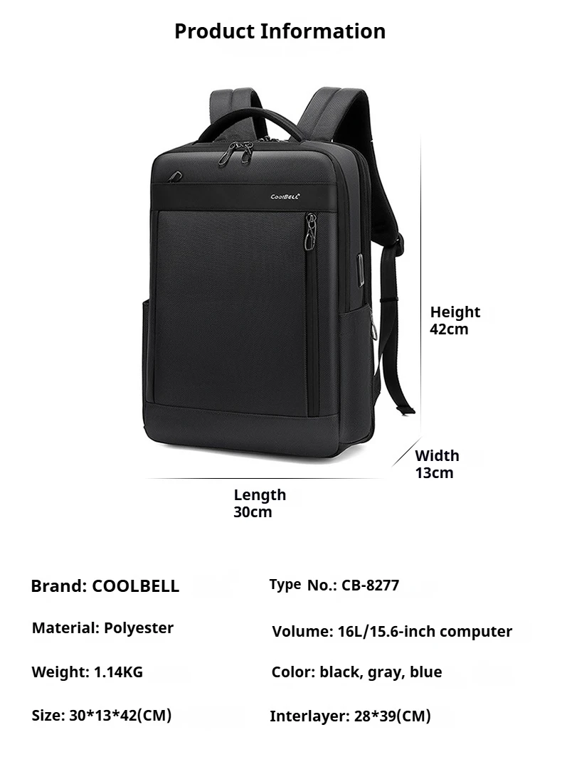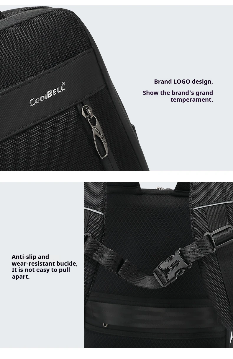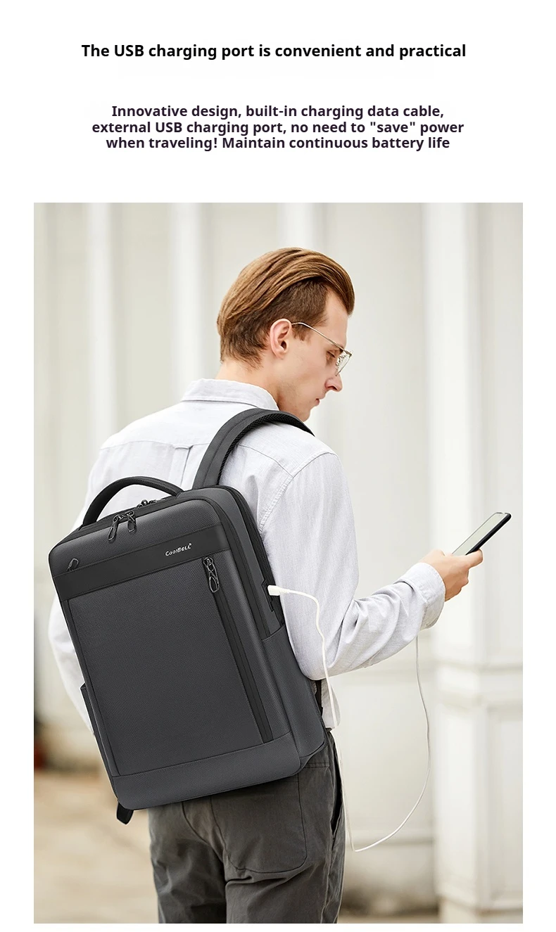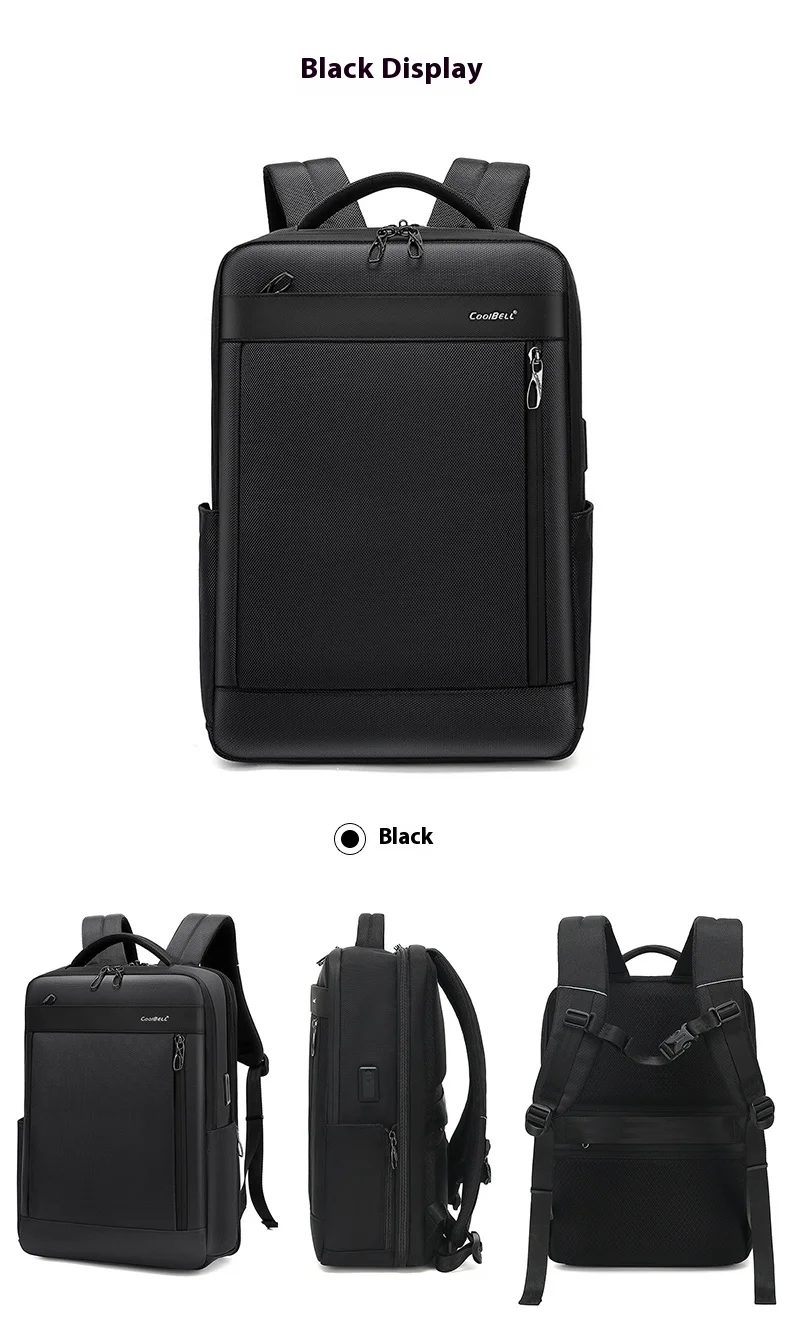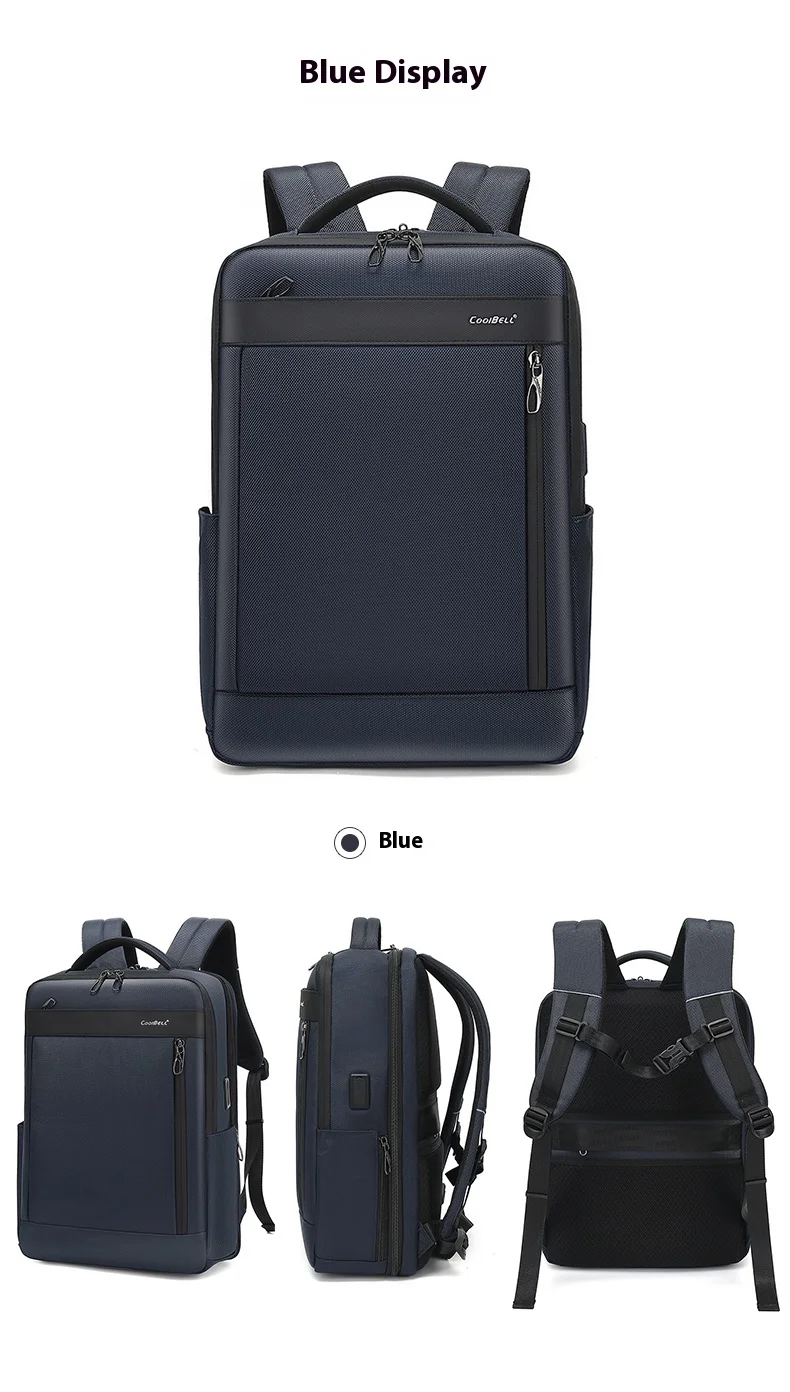 CoolBell 16L Waterproof Men Backpack For 15.6 inch Laptop W/ Micro USB&USB- A Charging Port/Shockprof Compartment ,180° Open