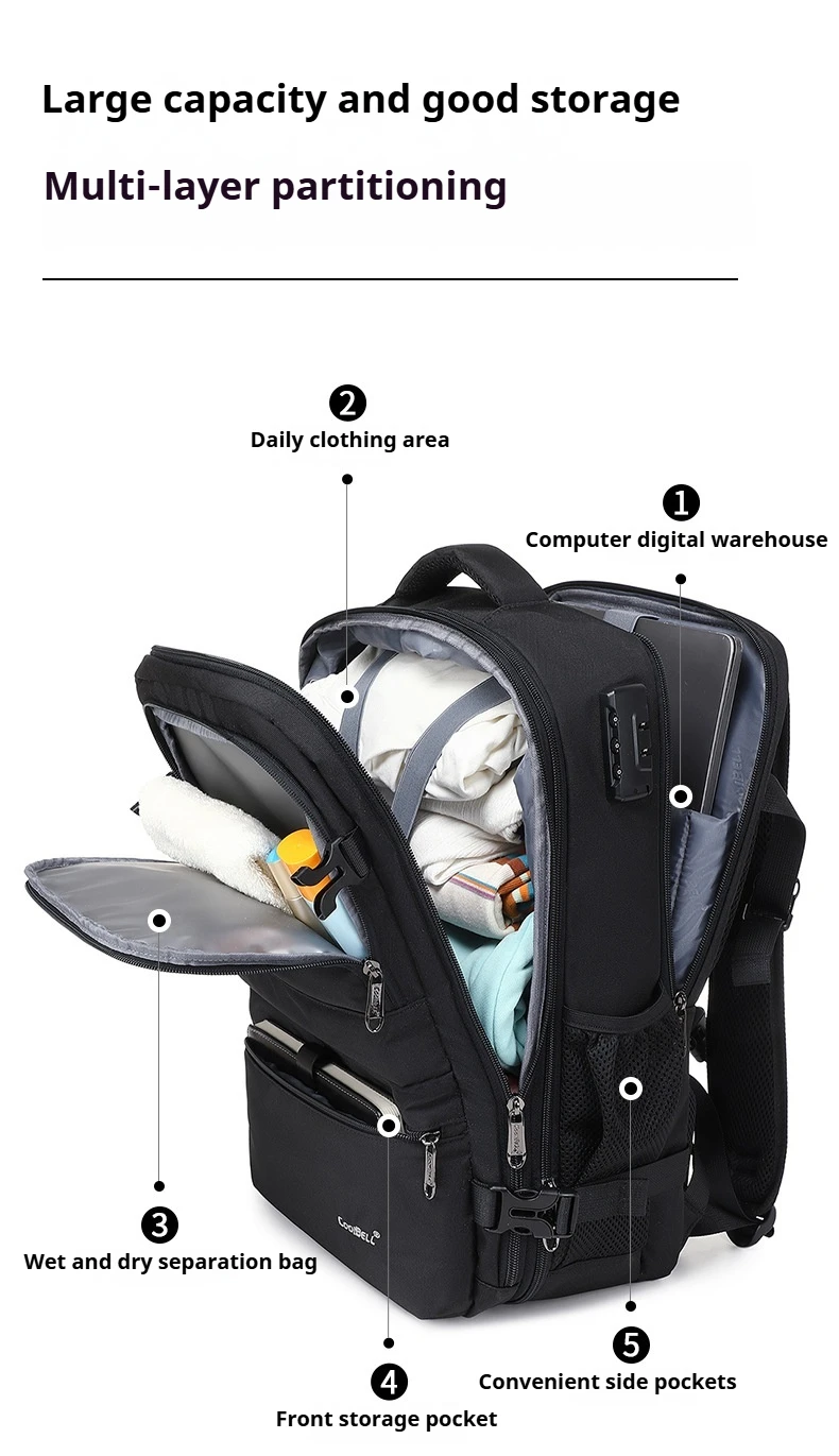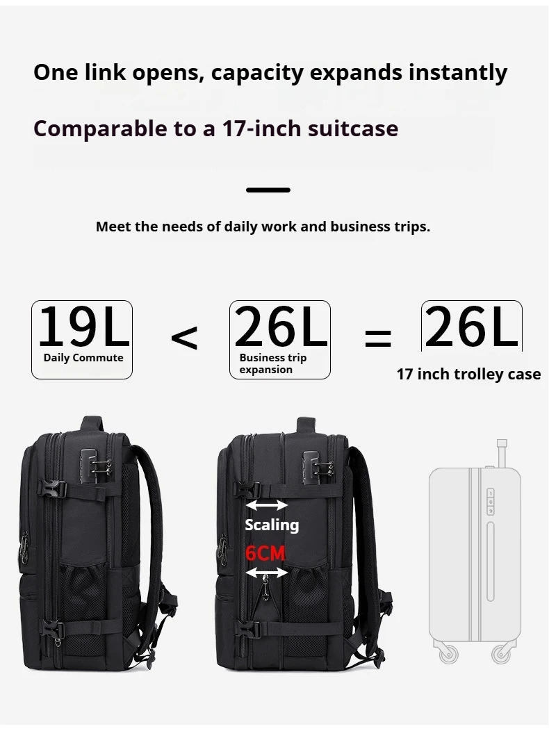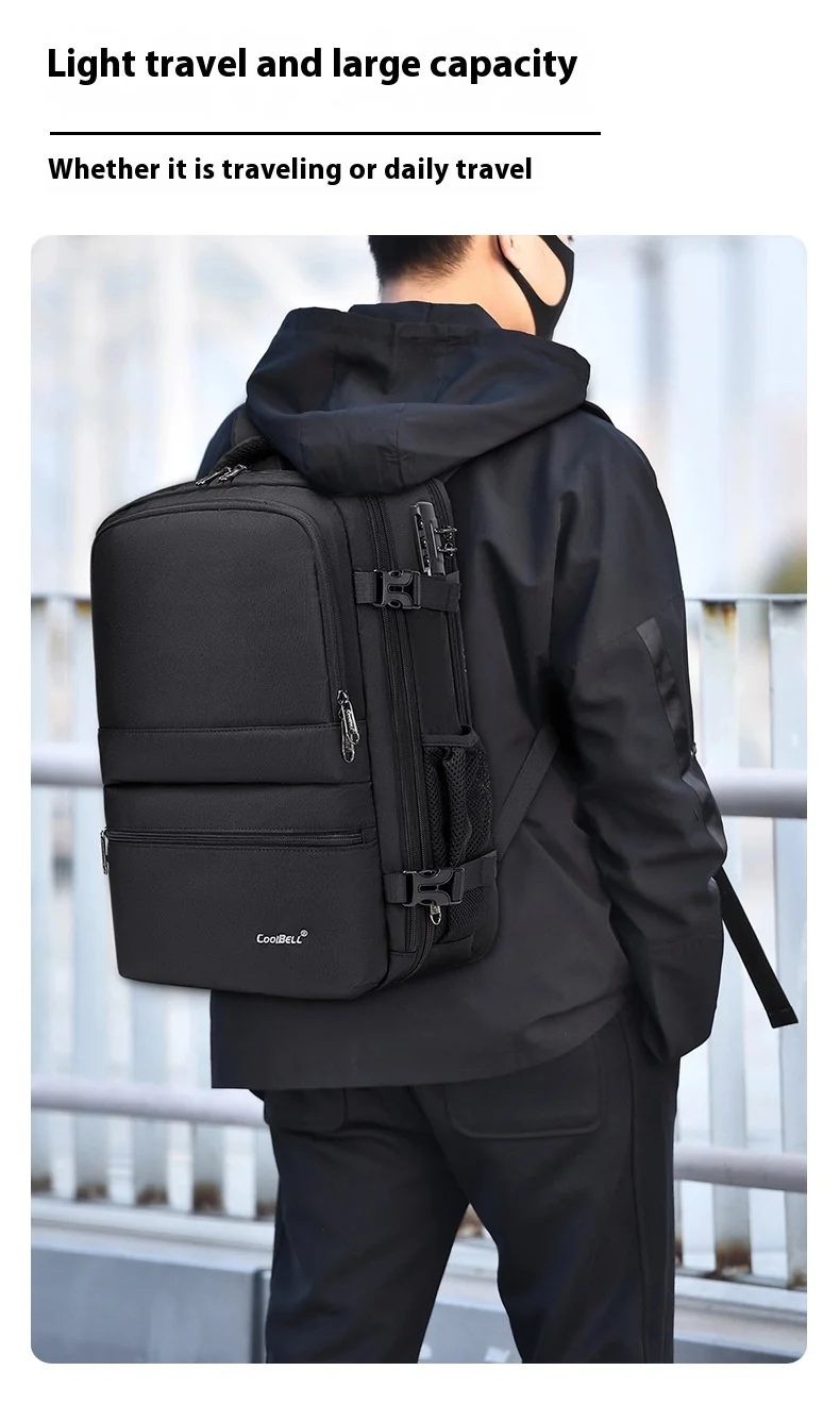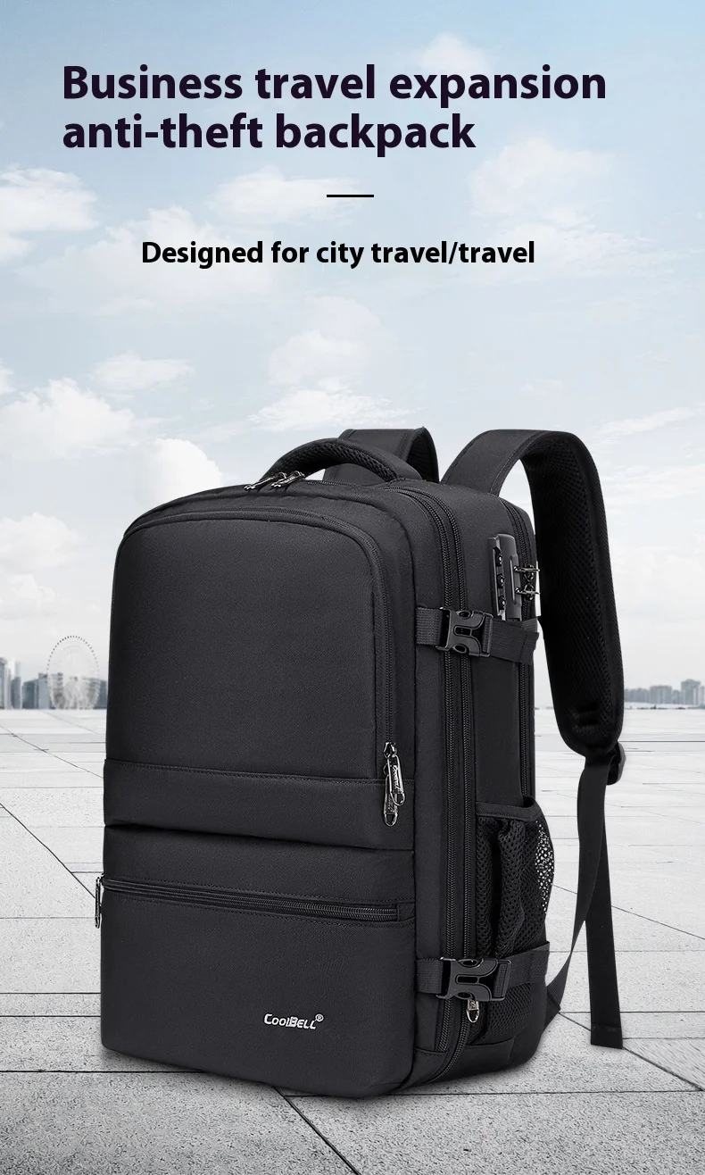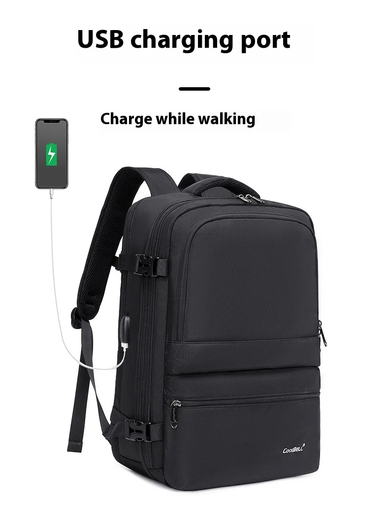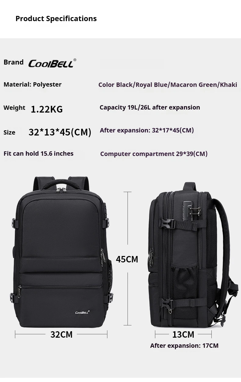 CoolBell 26L Expandable Anti-theft Waterproof Backpack For Men Women Lover 15.6 inch Laptop, USB-A Charging Port,180° Open, Wet/Dry Bag