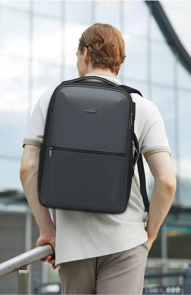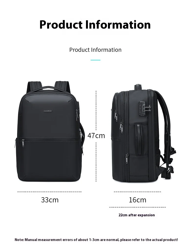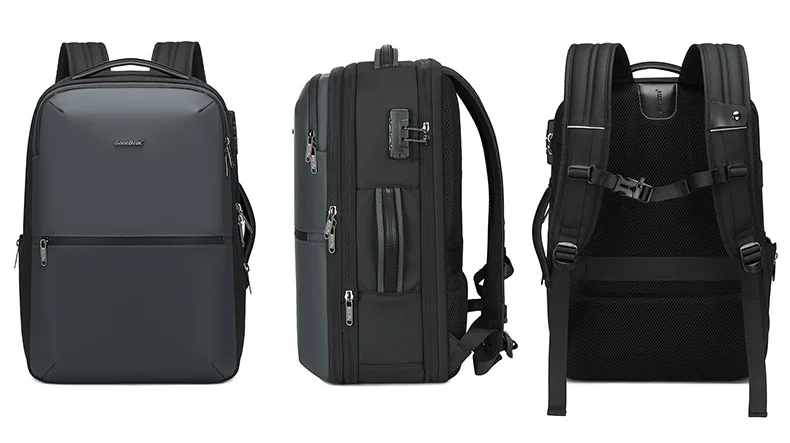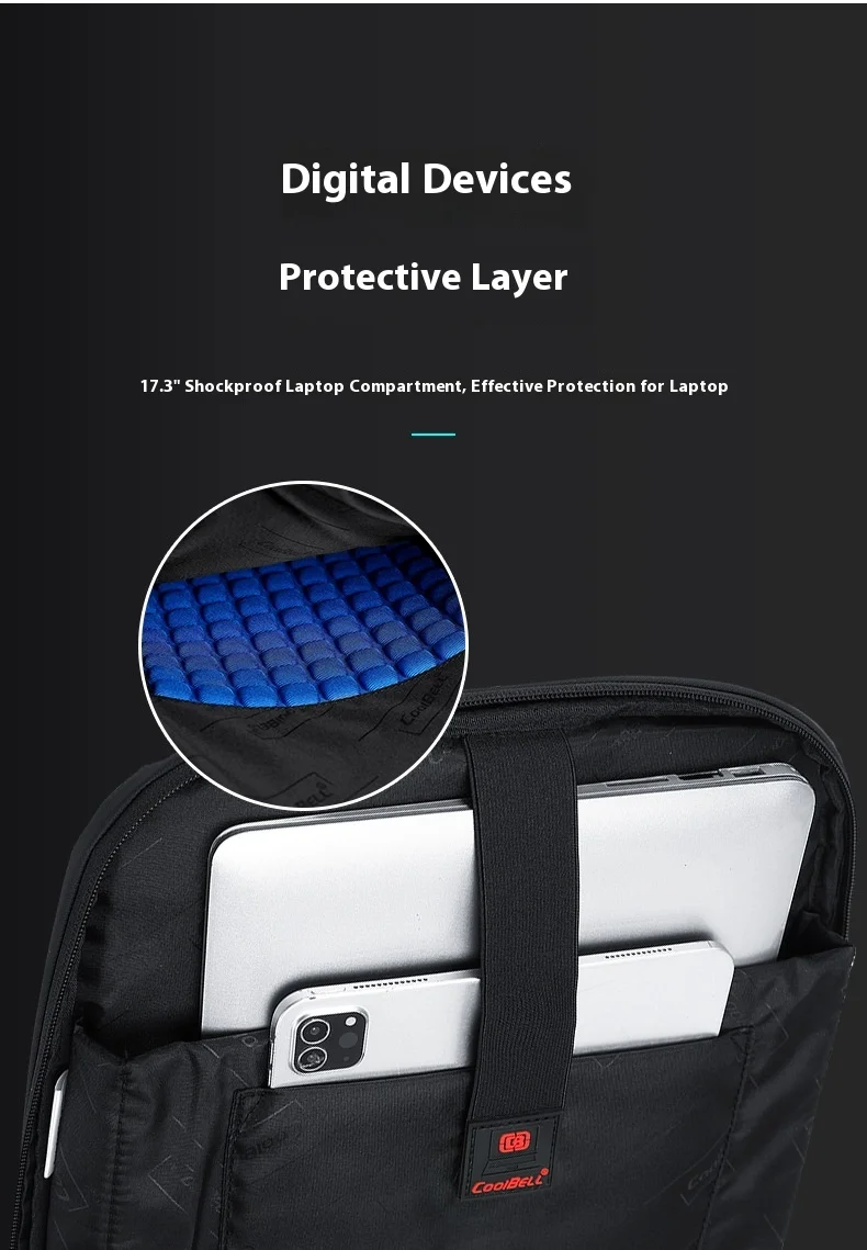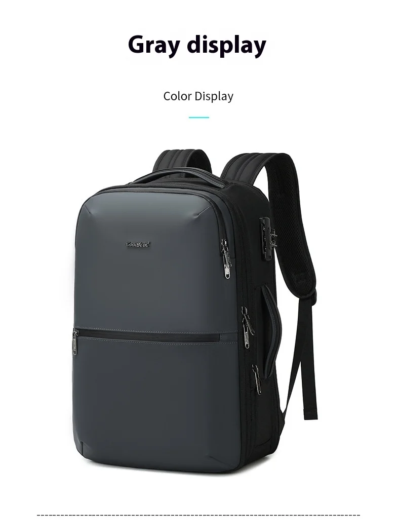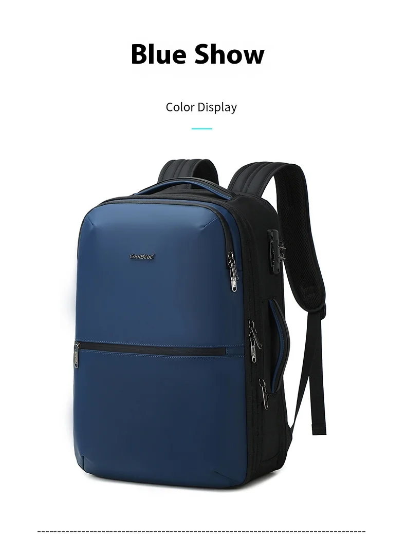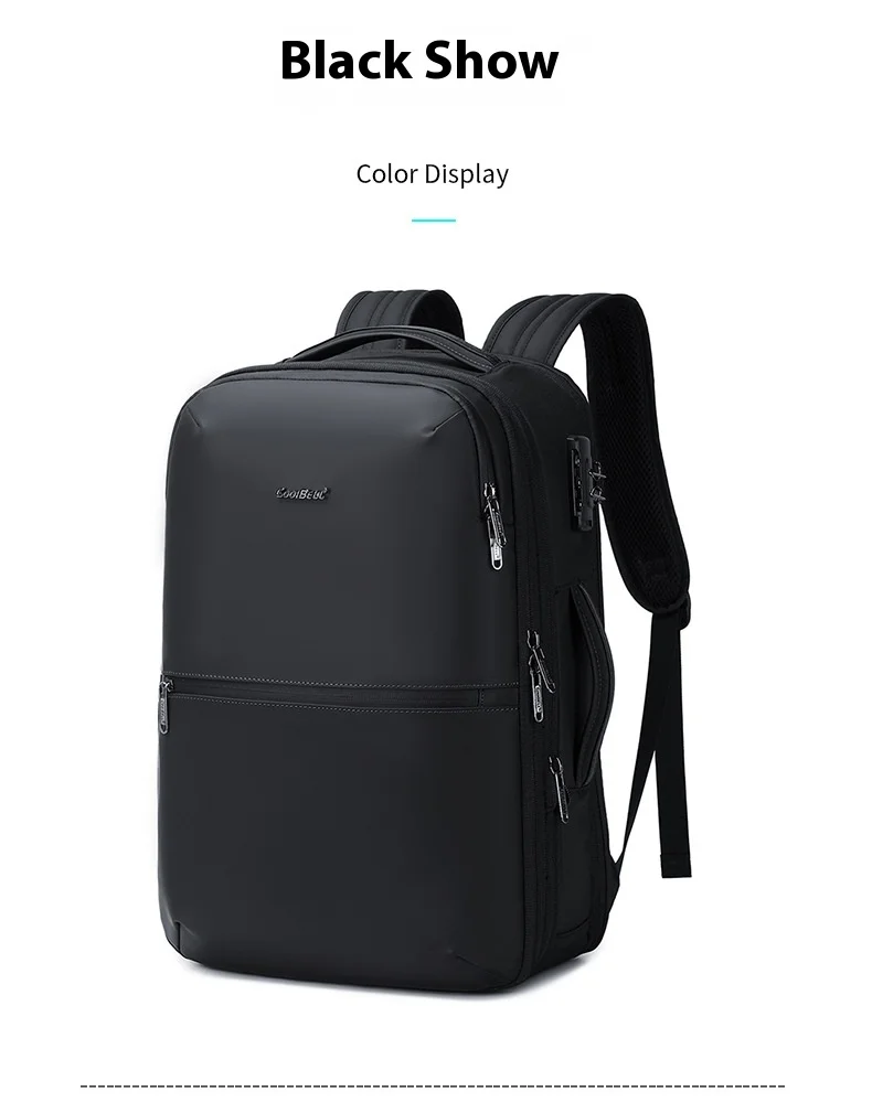 CoolBell Business Men’s Laptop Bag Double Shoulder 17 Inch Expandable Air Cushion Strap Pure Color Nylon Travel Backpack for Commuting