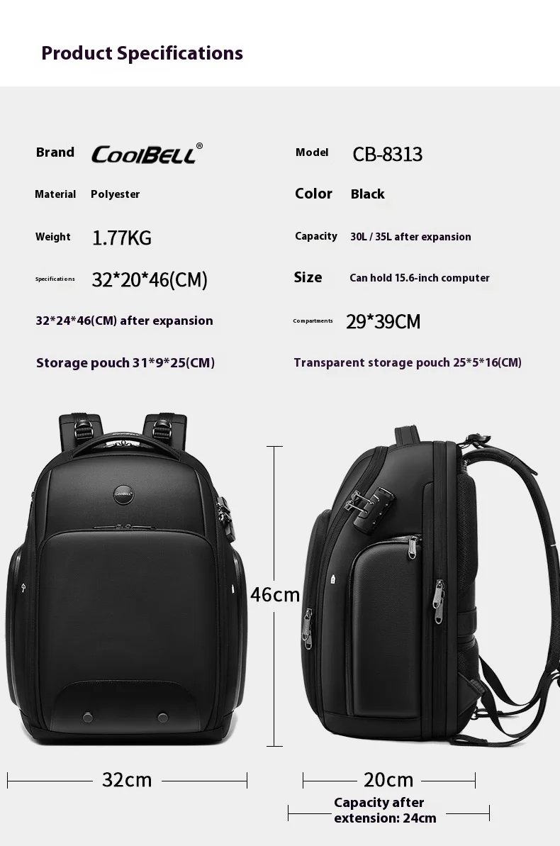 CoolBell Large Capacity Travel Expandable Large Suitcase Backpacks With 2 Packing Cubes Water Resistant Luggage Daypack Backpack