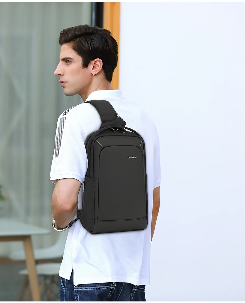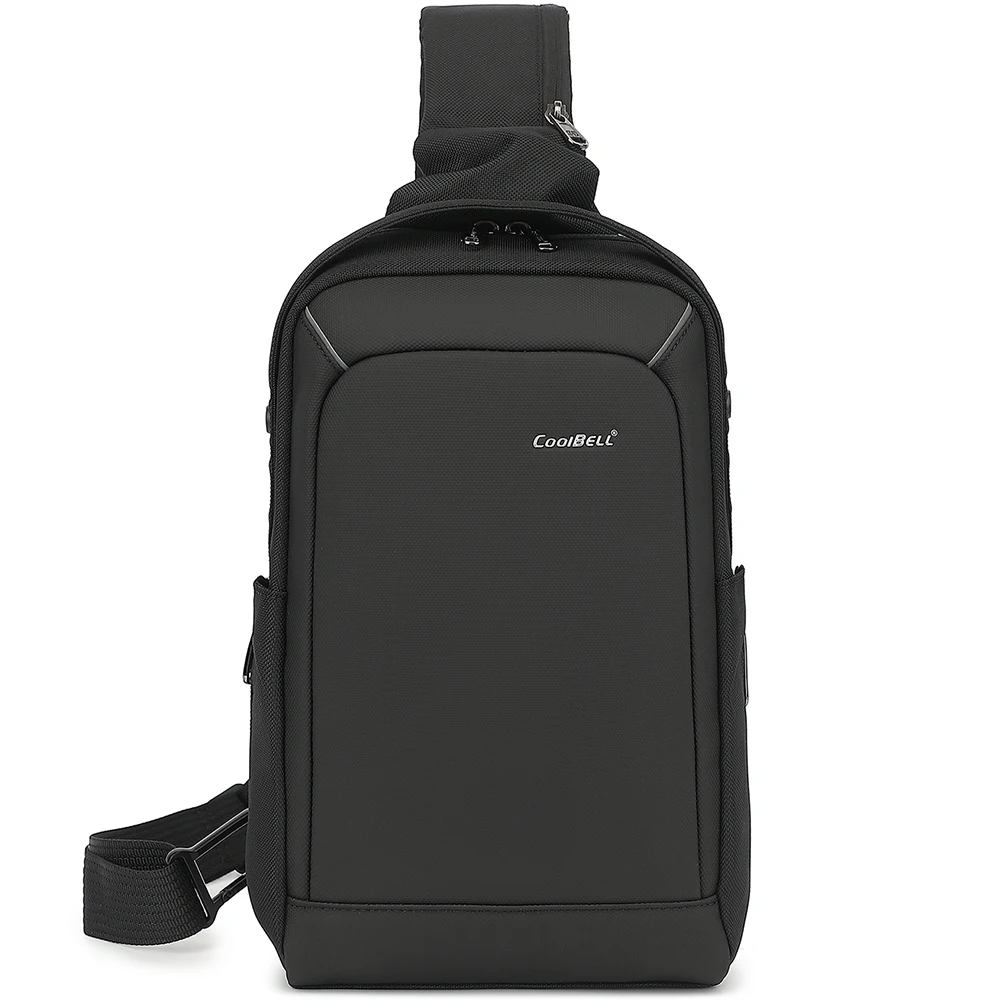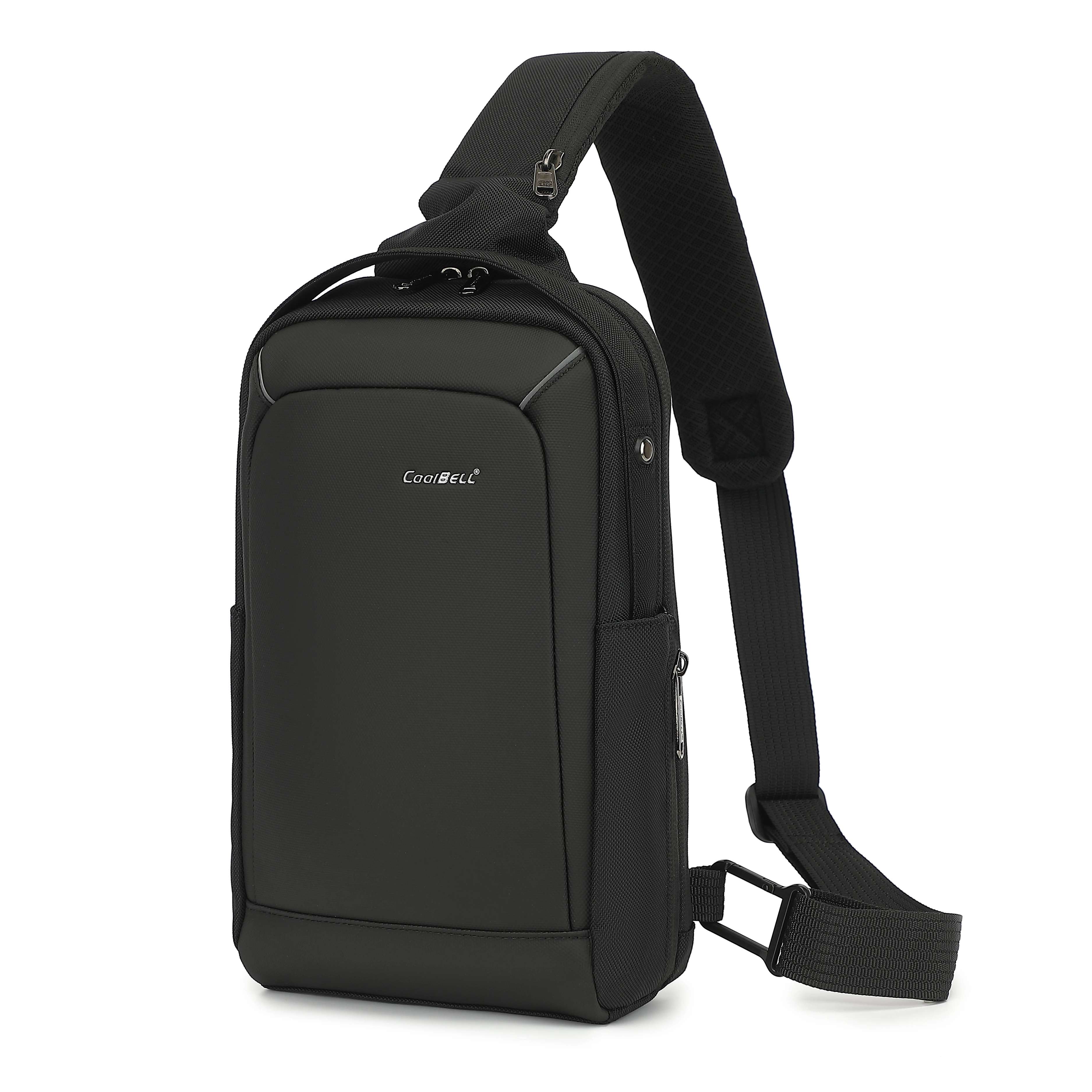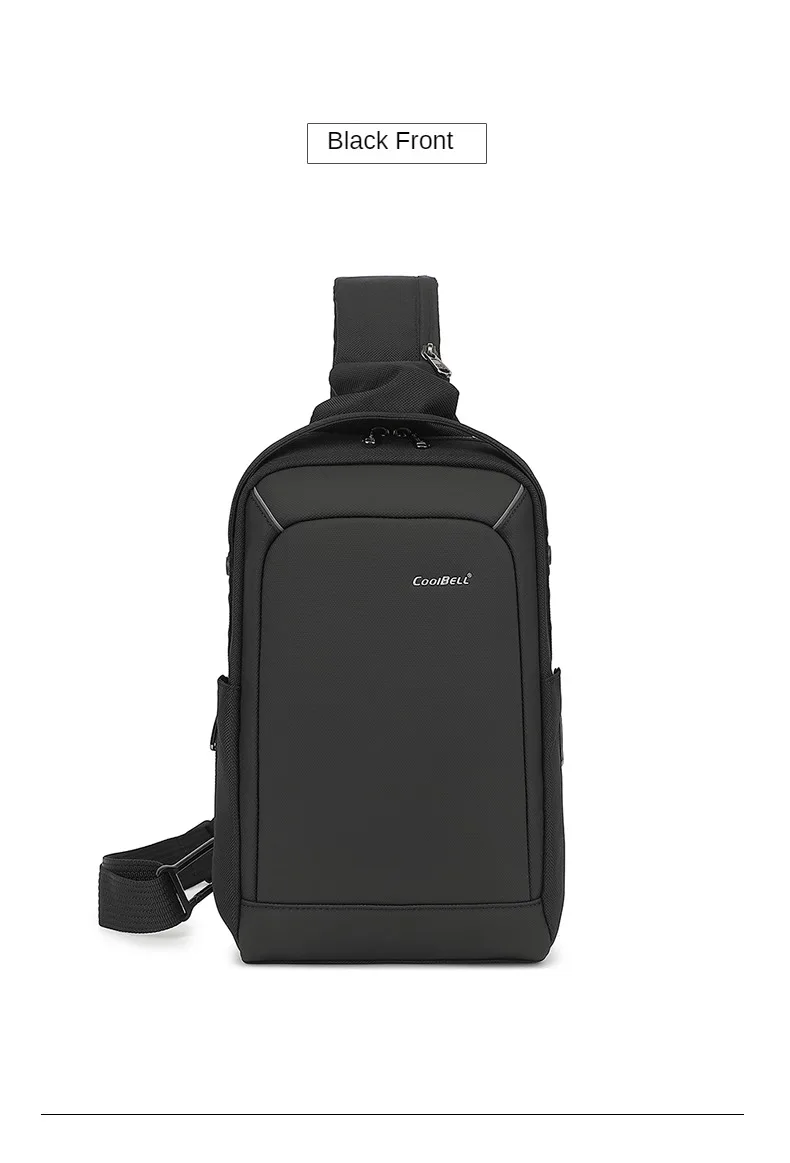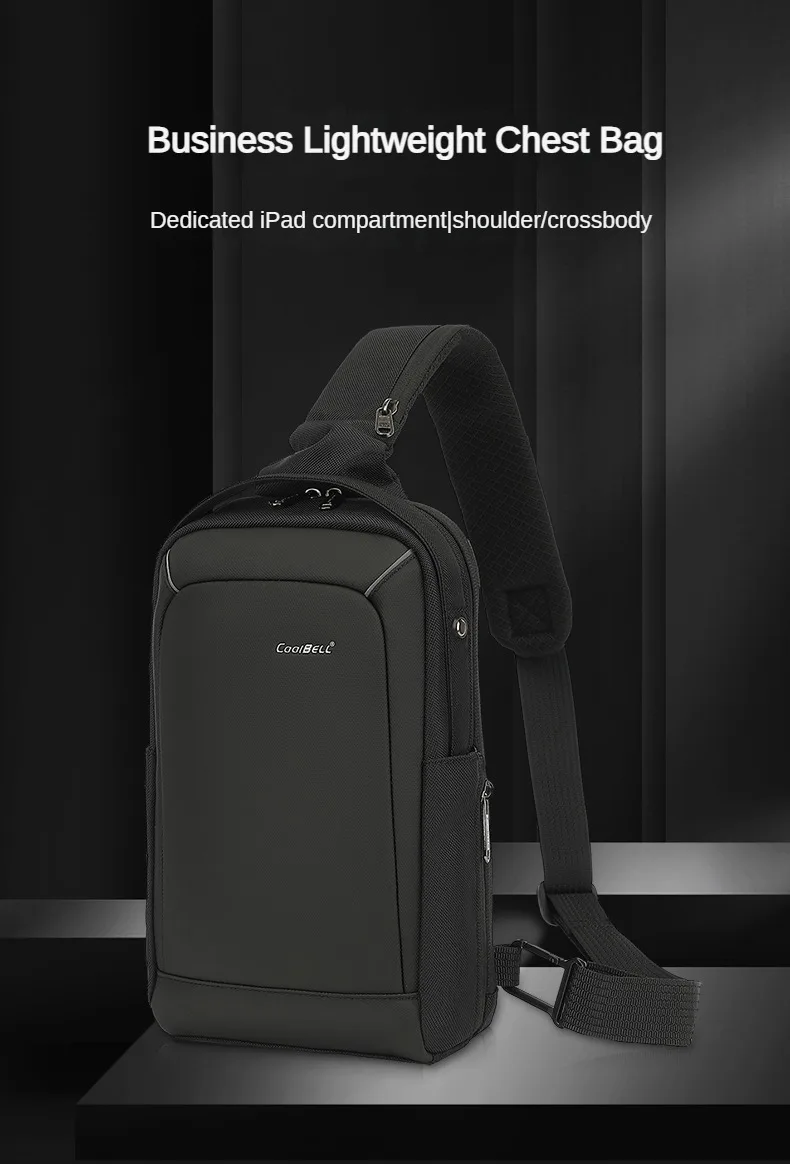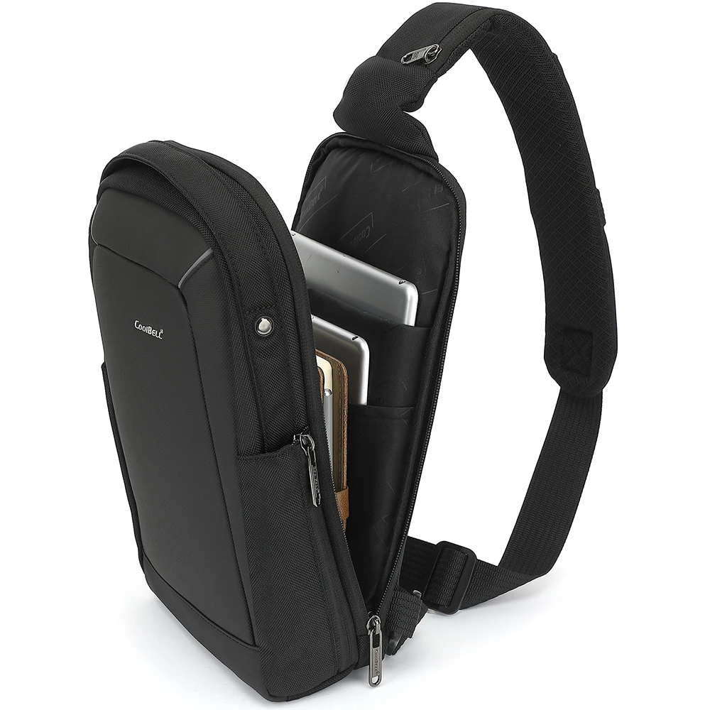 CoolBell Men Chest Bag Black w/ Nighttime Reflective Strip Riding Small Crossbody Bag Waterproof Messenger Bag for 7.9 inch iPad
