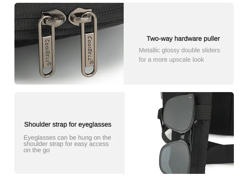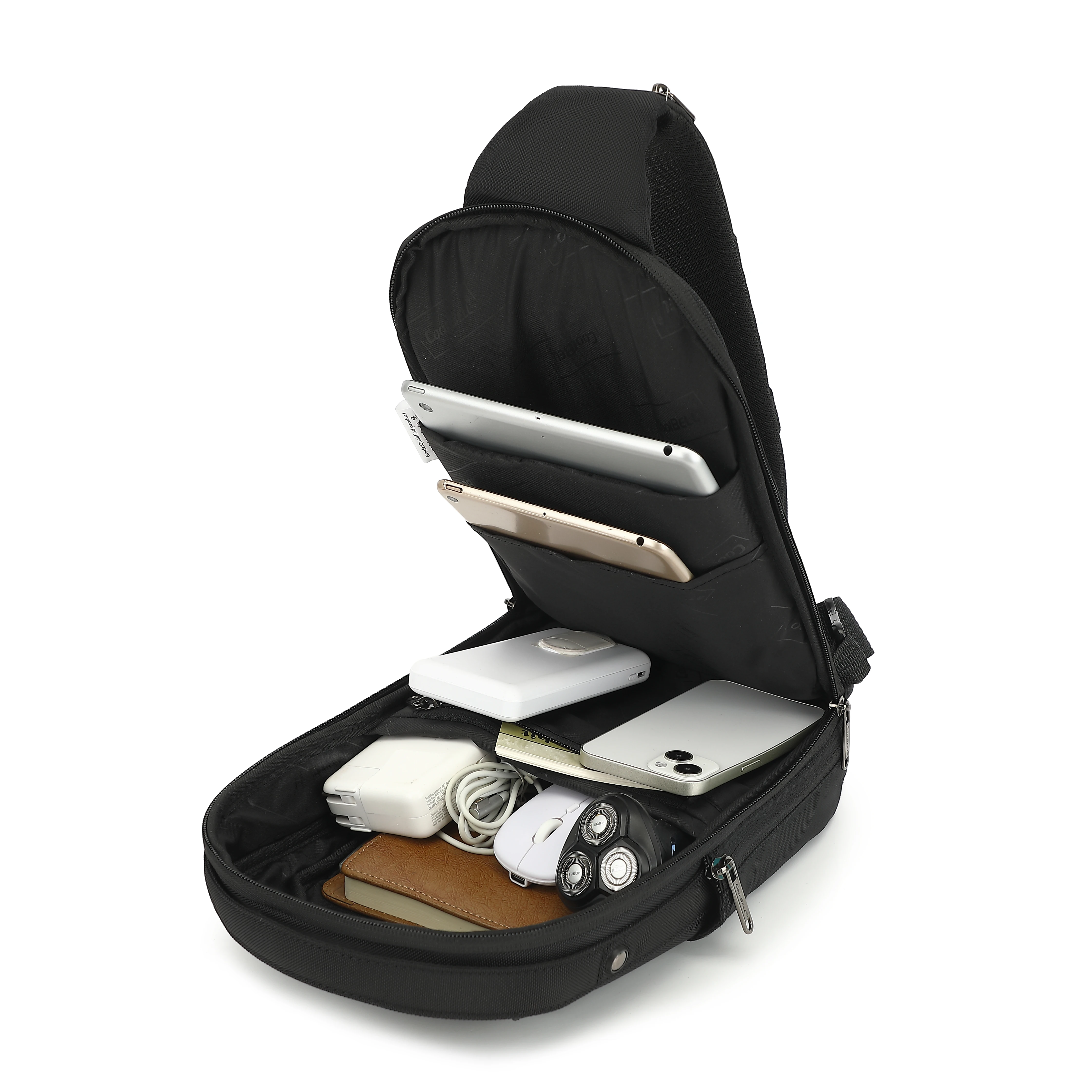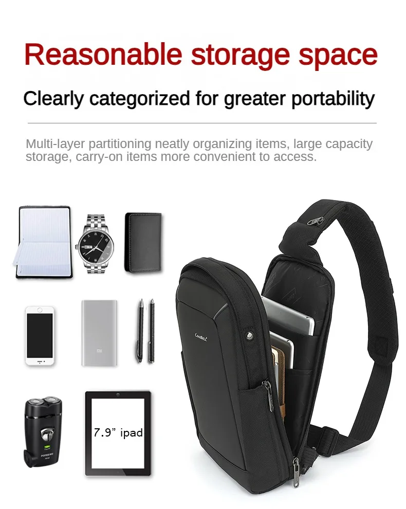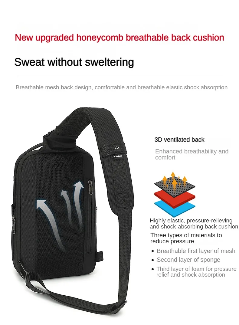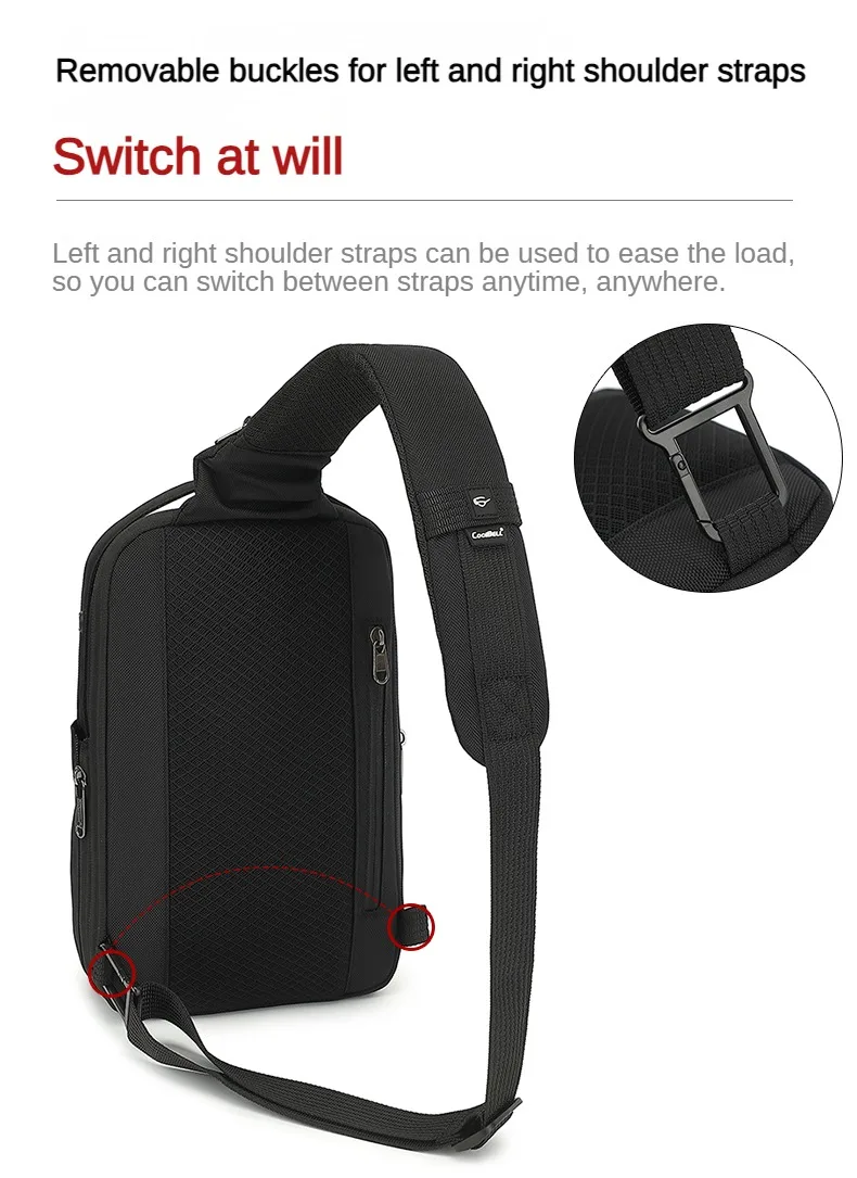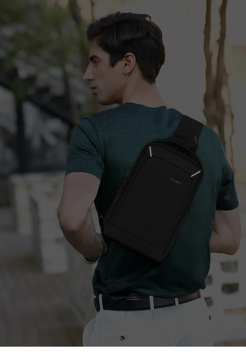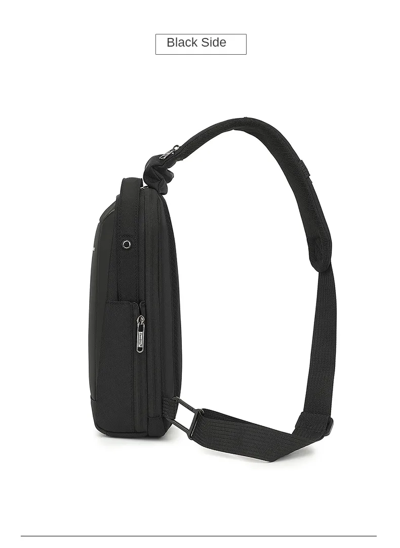 CoolBell Men Chest Bag Black w/ Nighttime Reflective Strip Riding Small Crossbody Bag Waterproof Messenger Bag for 7.9 inch iPad
