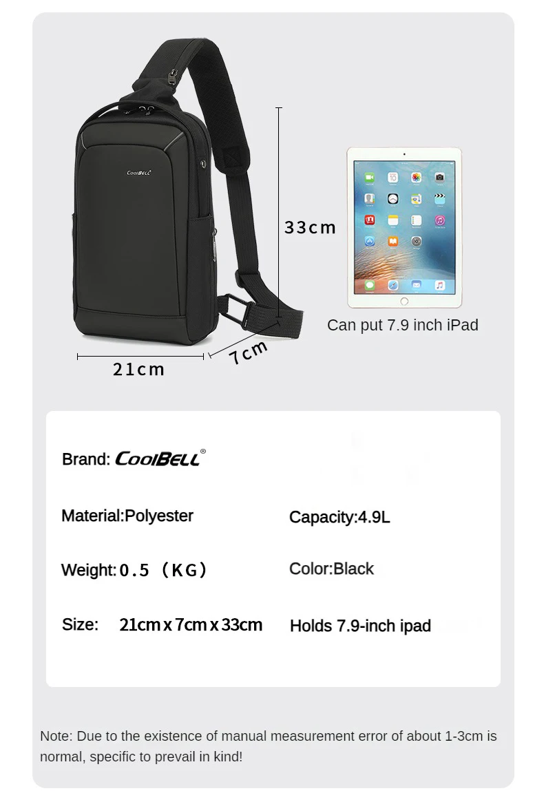 Be the first to review “CoolBell Men Chest Bag Black w/ Nighttime Reflective Strip Riding Small Crossbody Bag Waterproof Messenger Bag for 7.9 inch iPad” Cancel reply