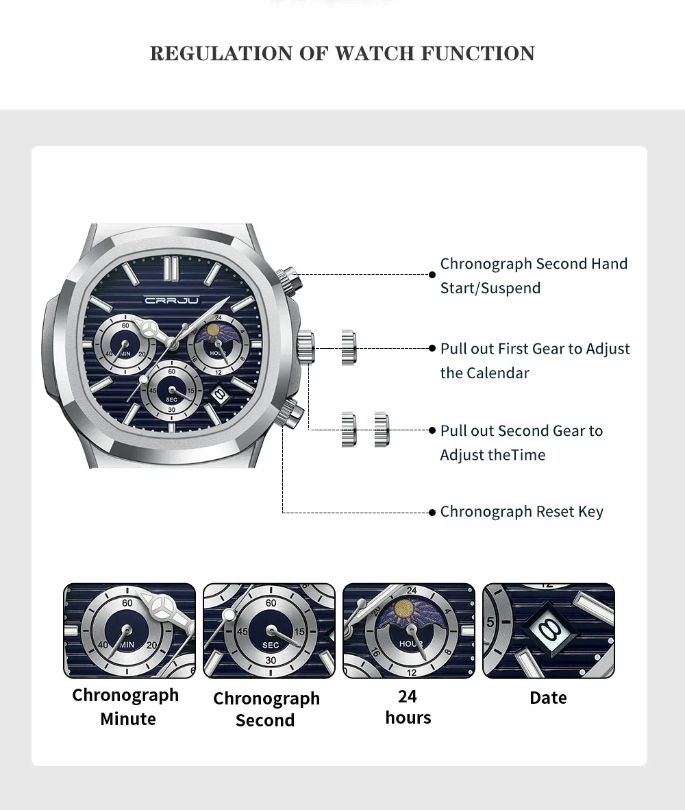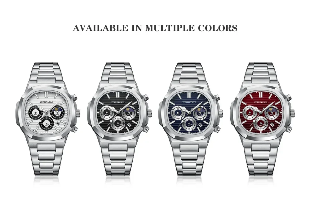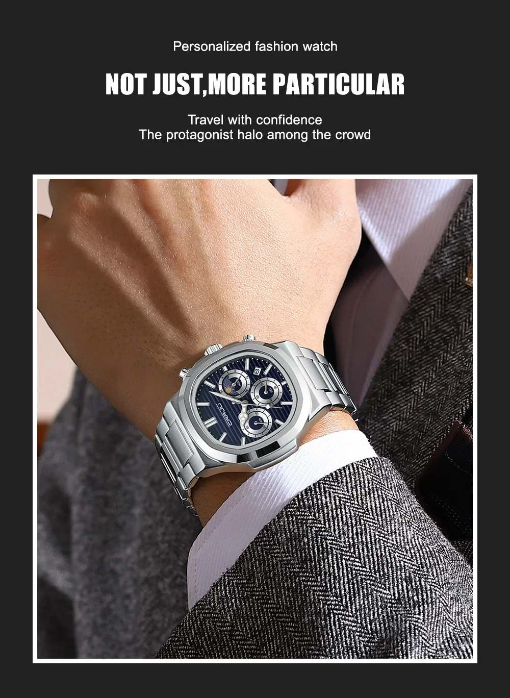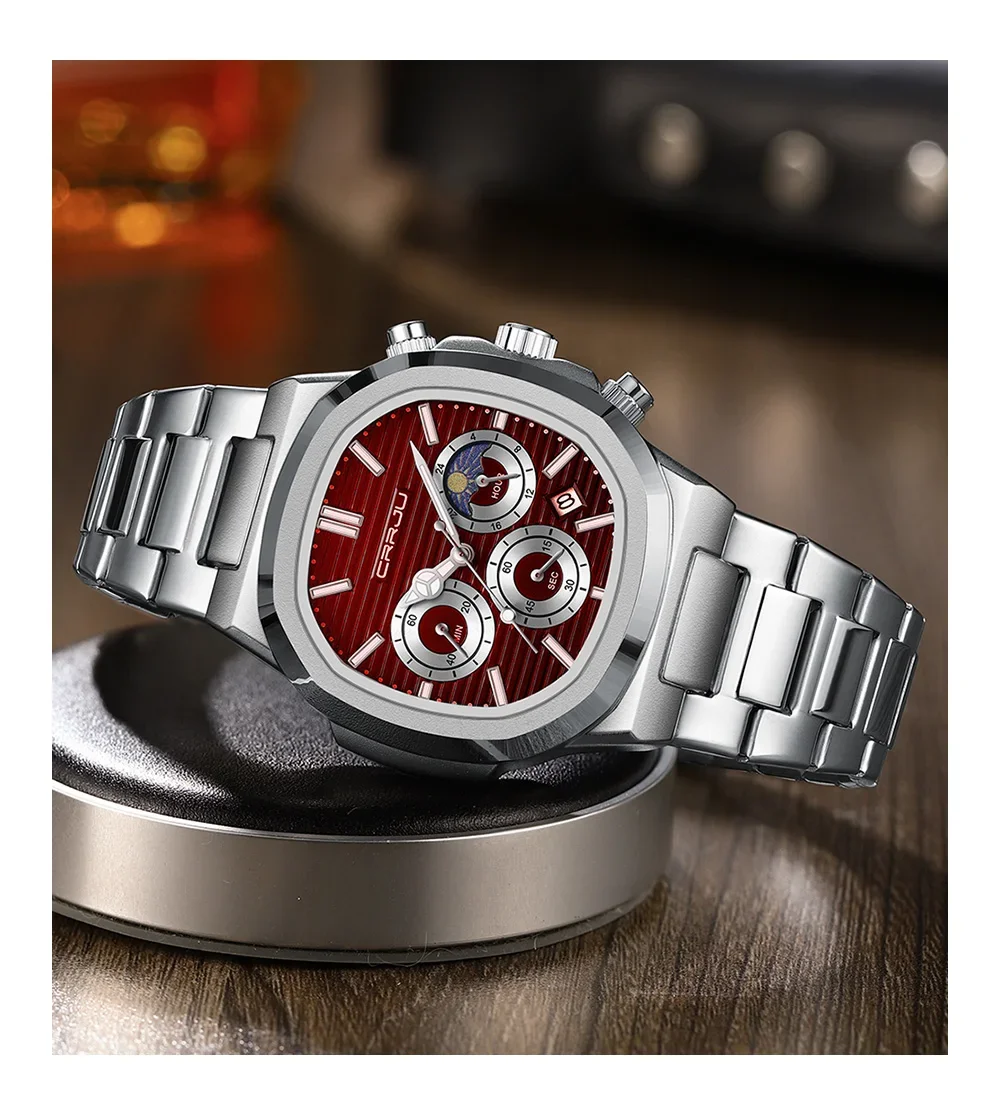 CRRJU Pilot-Style Men’s Watch – Durable Stainless Steel Band, Luminous Display, Waterproof 3ATM Quartz Wristwatch