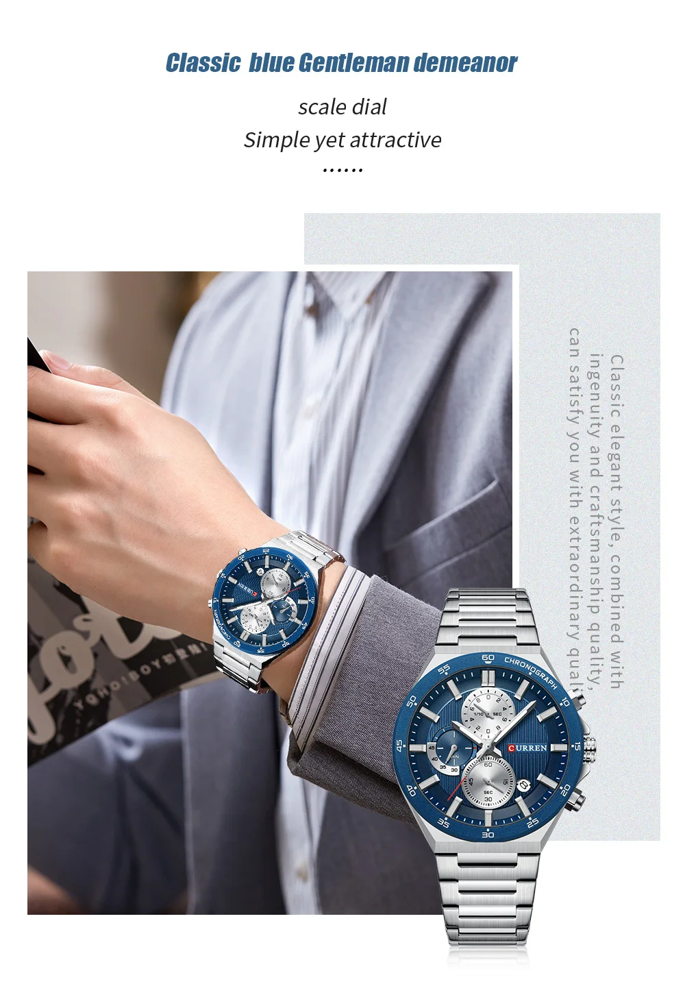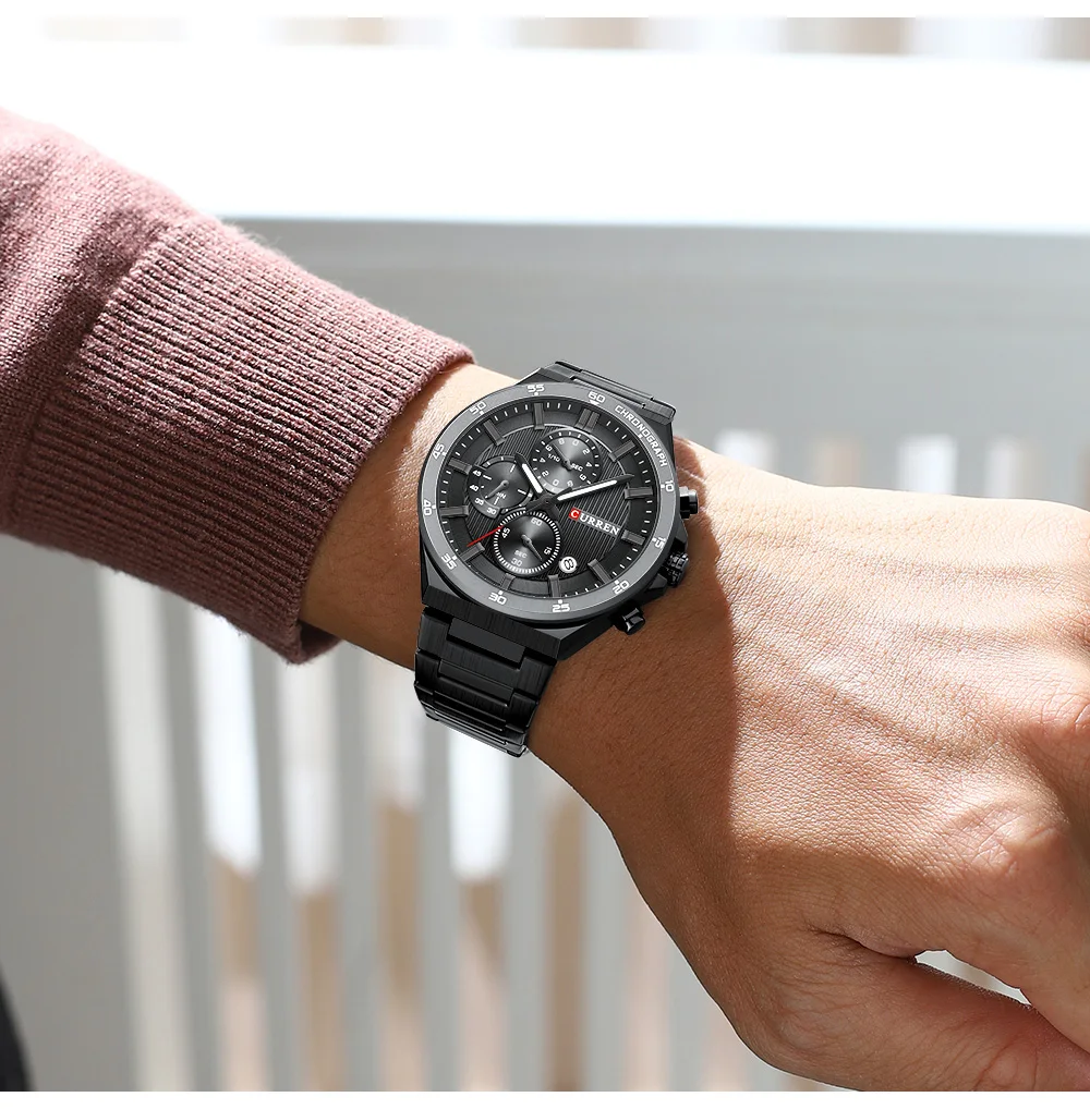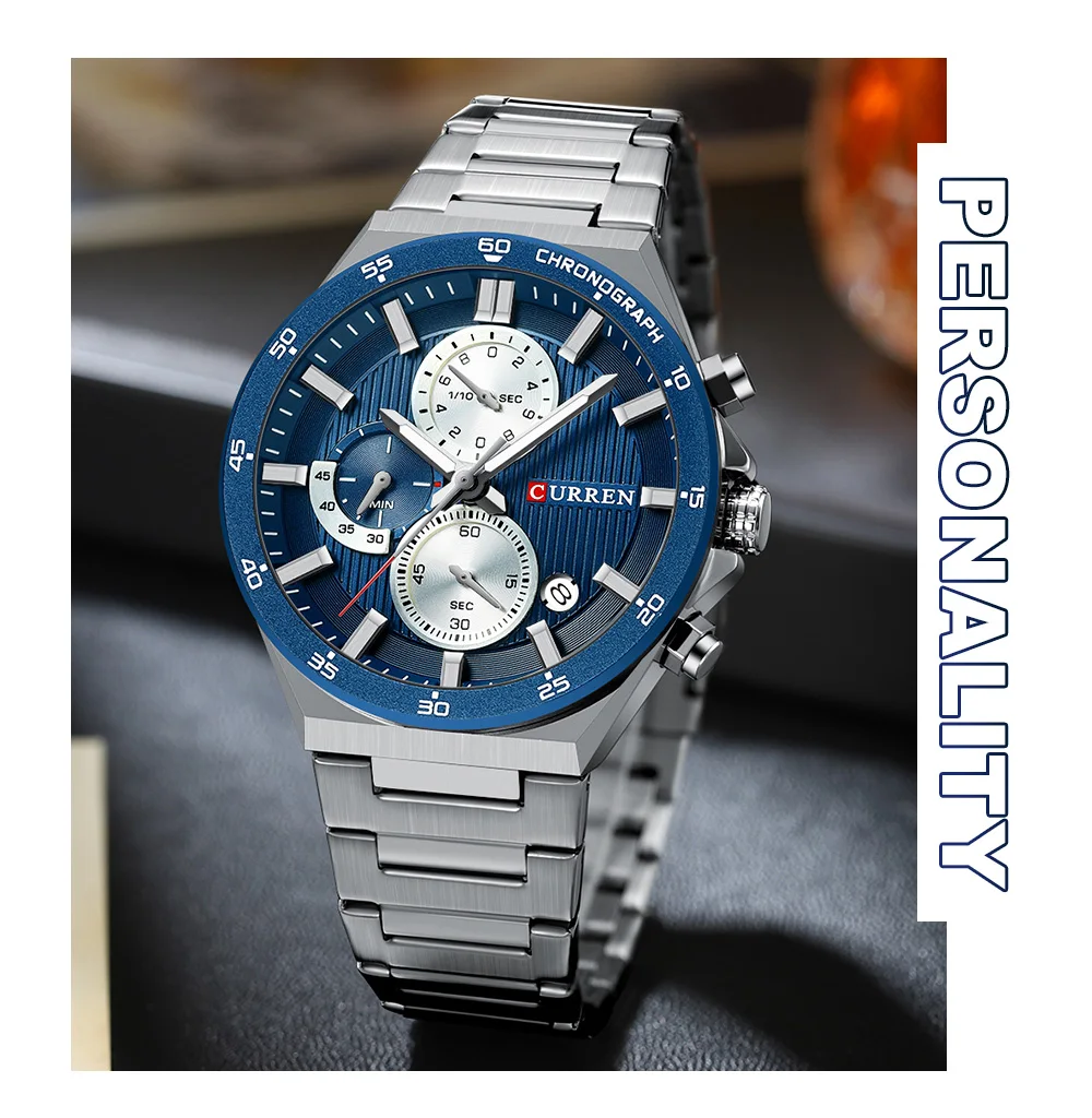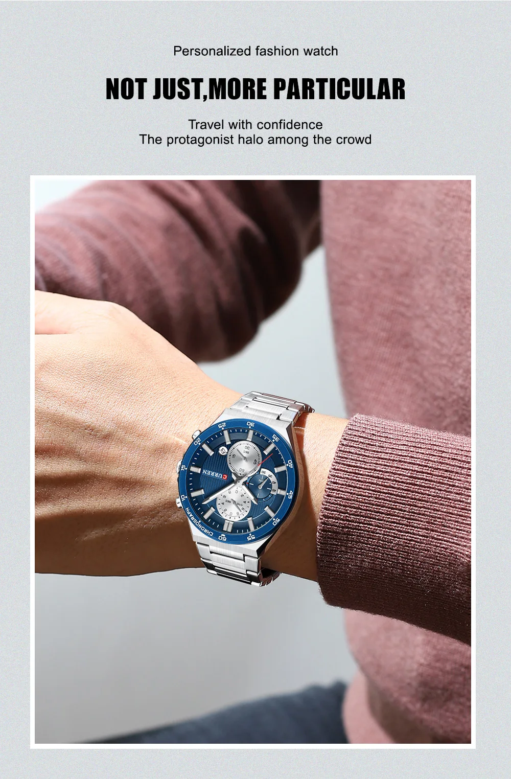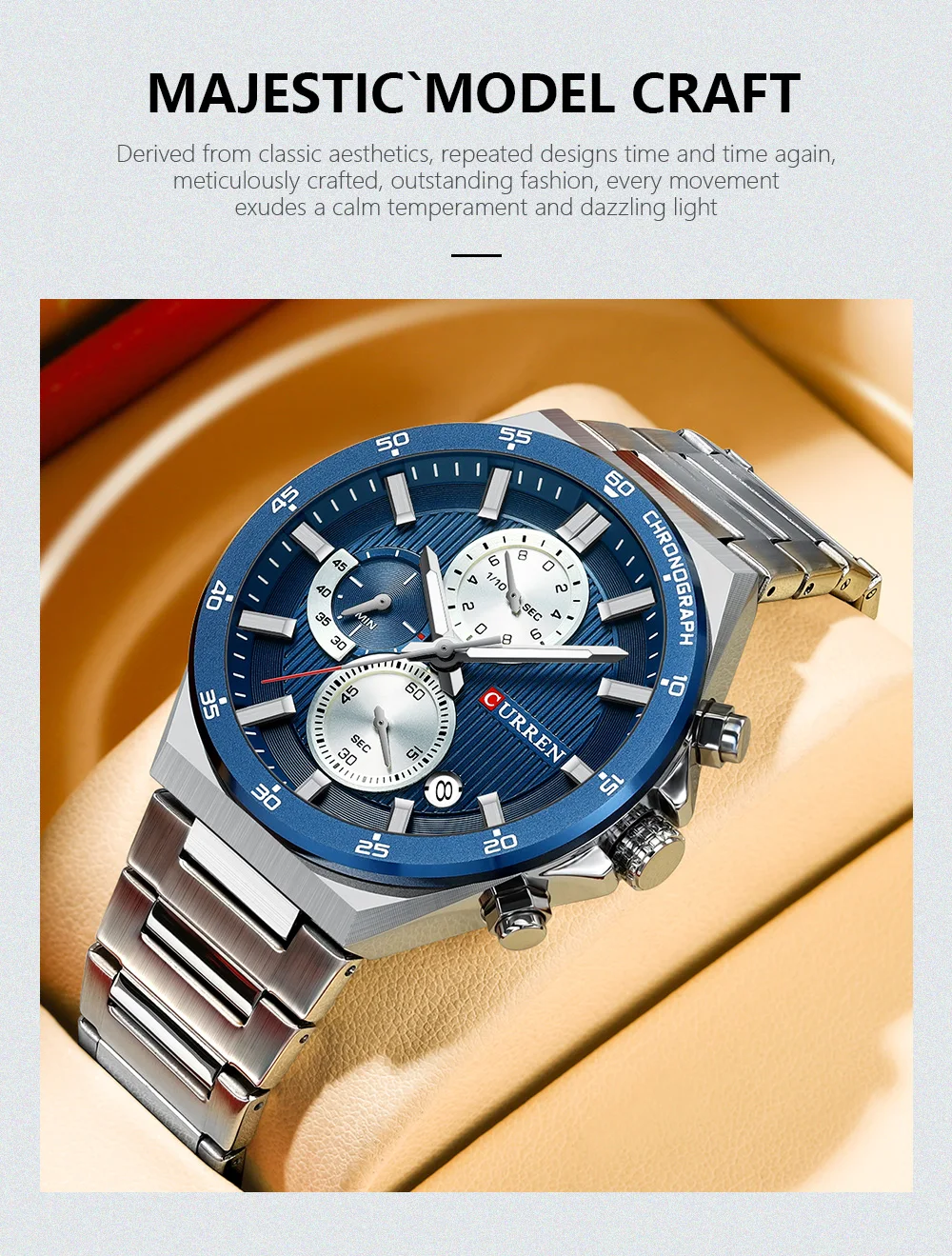 CURREN Men’s Luxury Chronograph Watch – Luminous, Waterproof, Stainless Steel Quartz Wristwatch