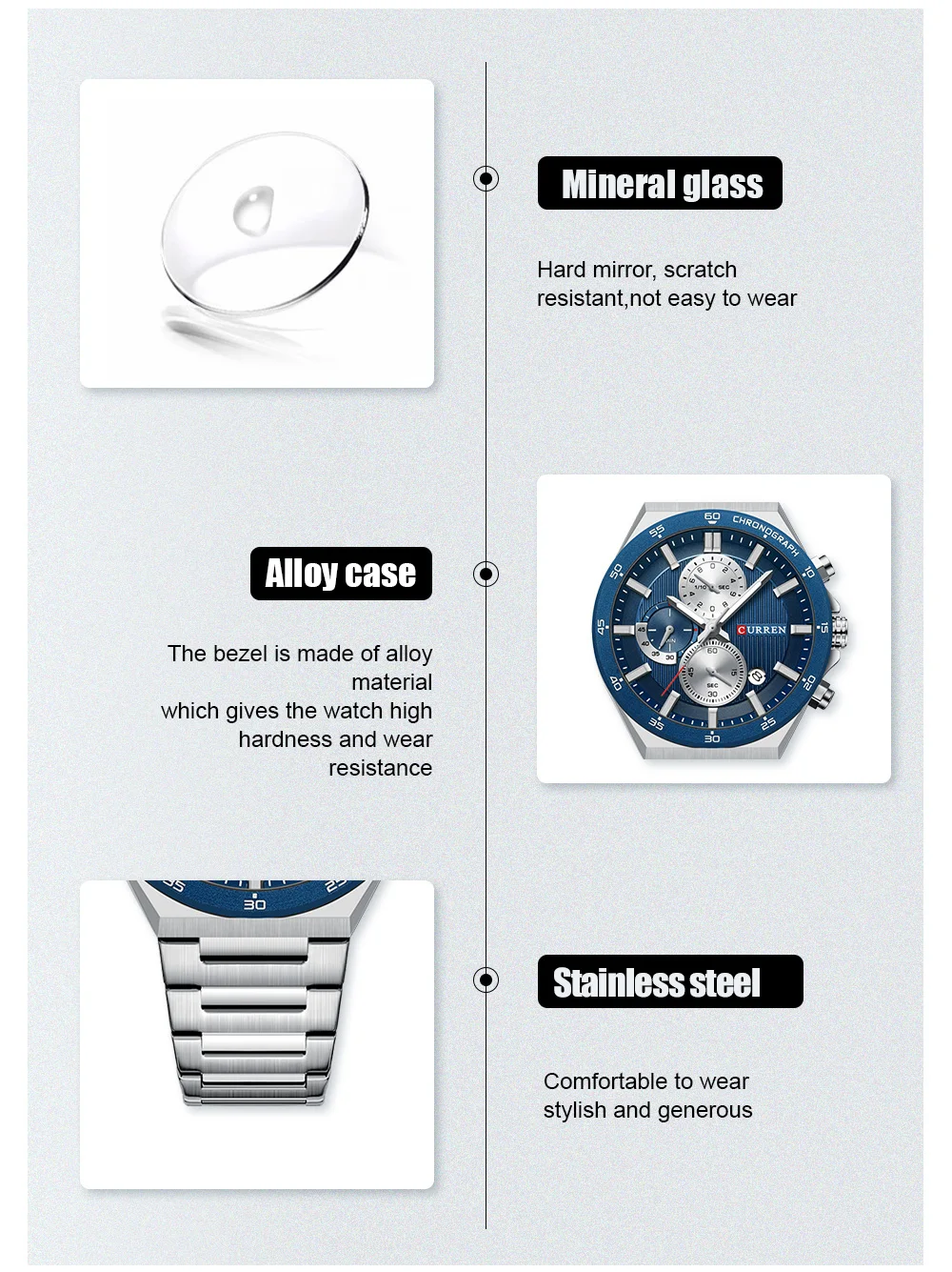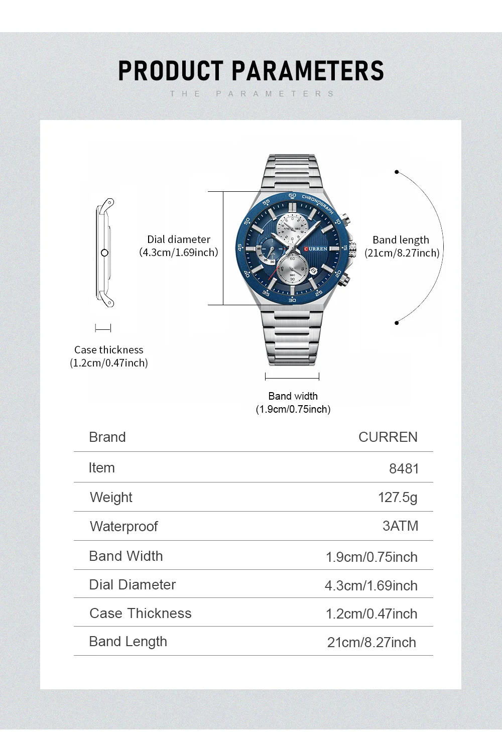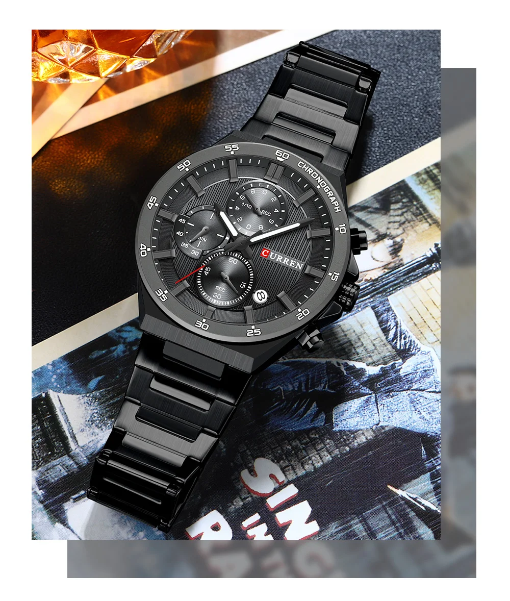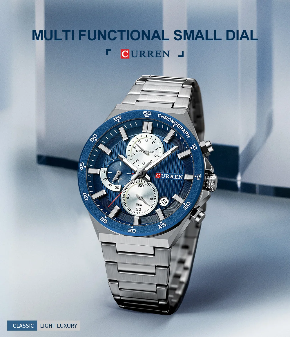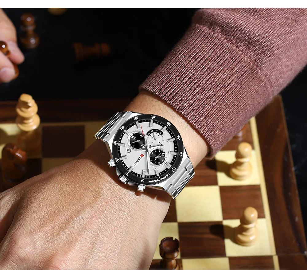 CURREN Men’s Luxury Chronograph Watch – Luminous, Waterproof, Stainless Steel Quartz Wristwatch