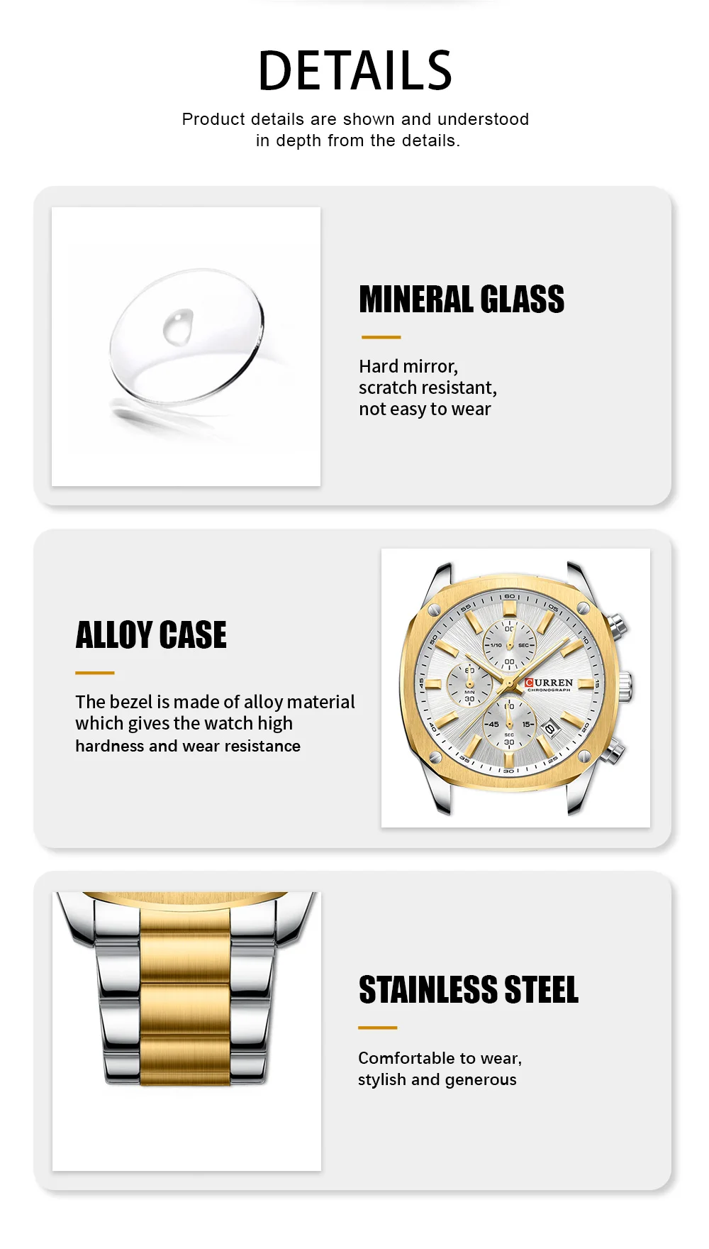 - Band Material: Stainless steel (Two-tone optional)