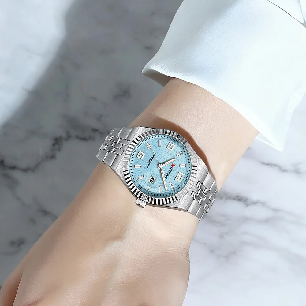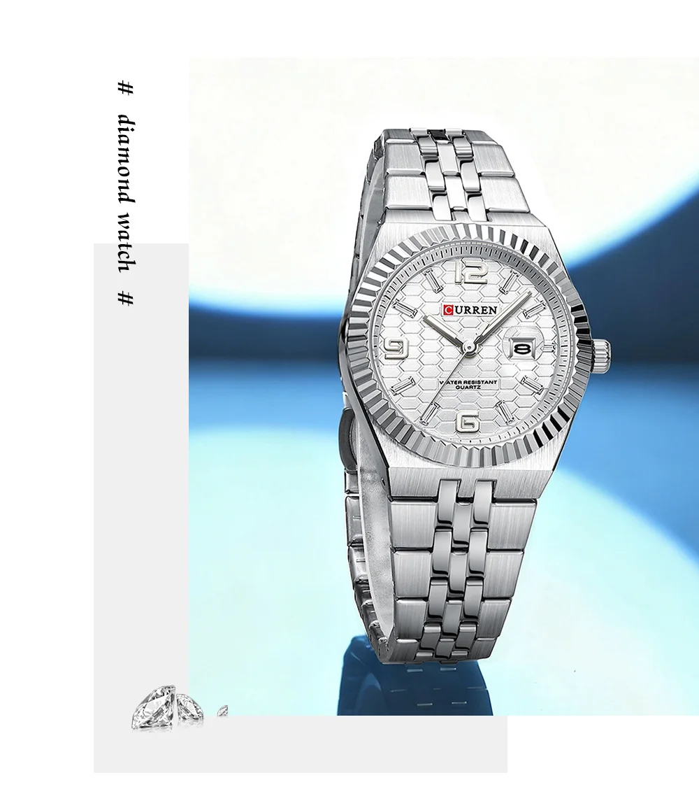 CURREN Original Ladies Quartz Watch – Luminous Display, 3Bar Waterproof, Stainless Steel Strap, Minimalist Round Dial, Japanese Movement