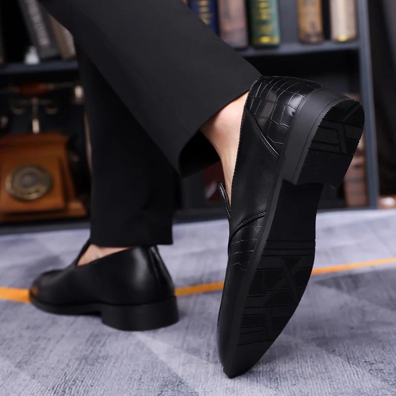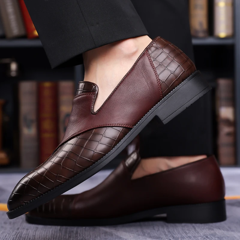 Men’s Elegant Business Slip-On Shoes – Pointed Toe Formal Dress Shoes, Anti-Slip Durable Sole for Office & Events