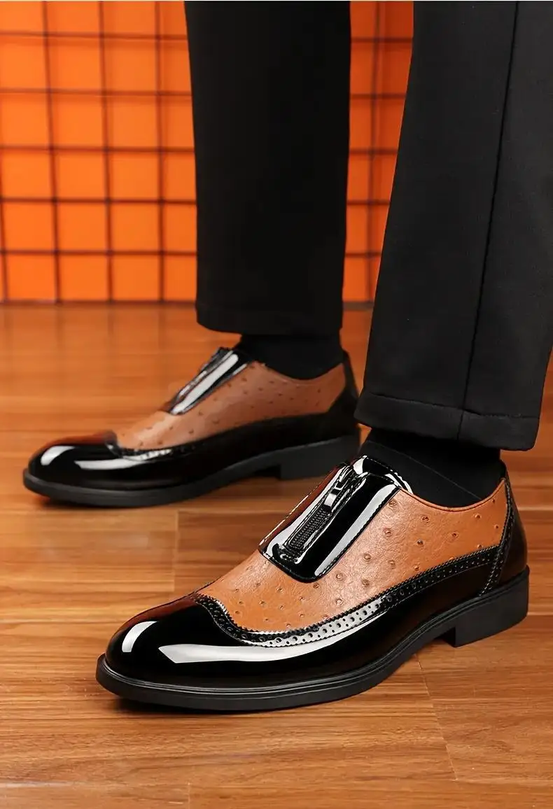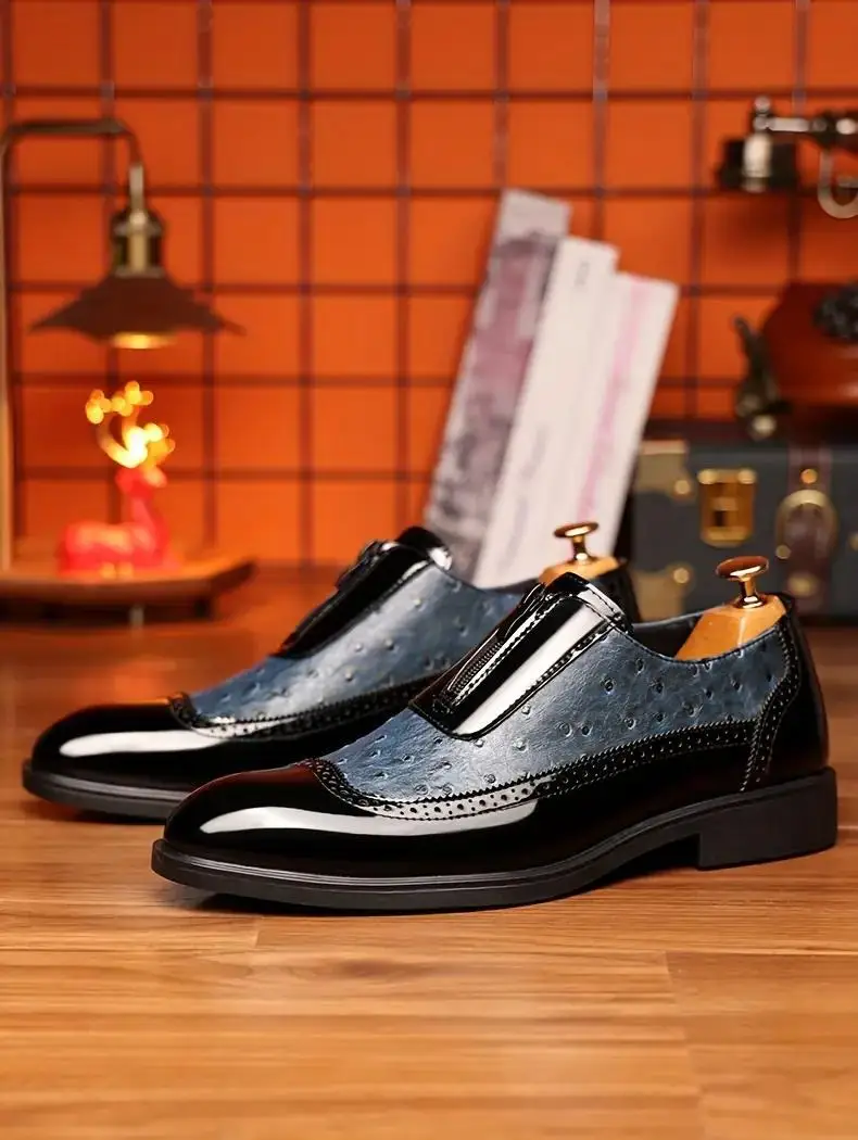 Autumn Brock Leather Men’s Head Layer Cowhide British Korean Version Breathable Business Dress Casual Wedding Leather Shoes
