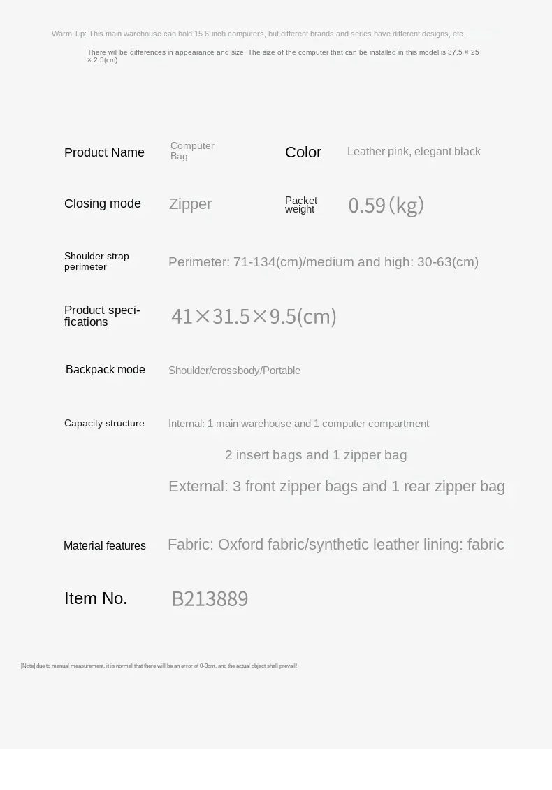 - Material: Oxford Textile (Nylon)/Synthetic Leather