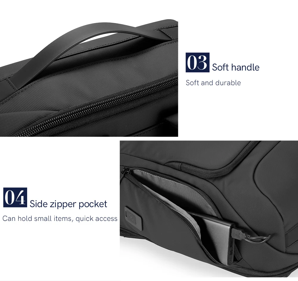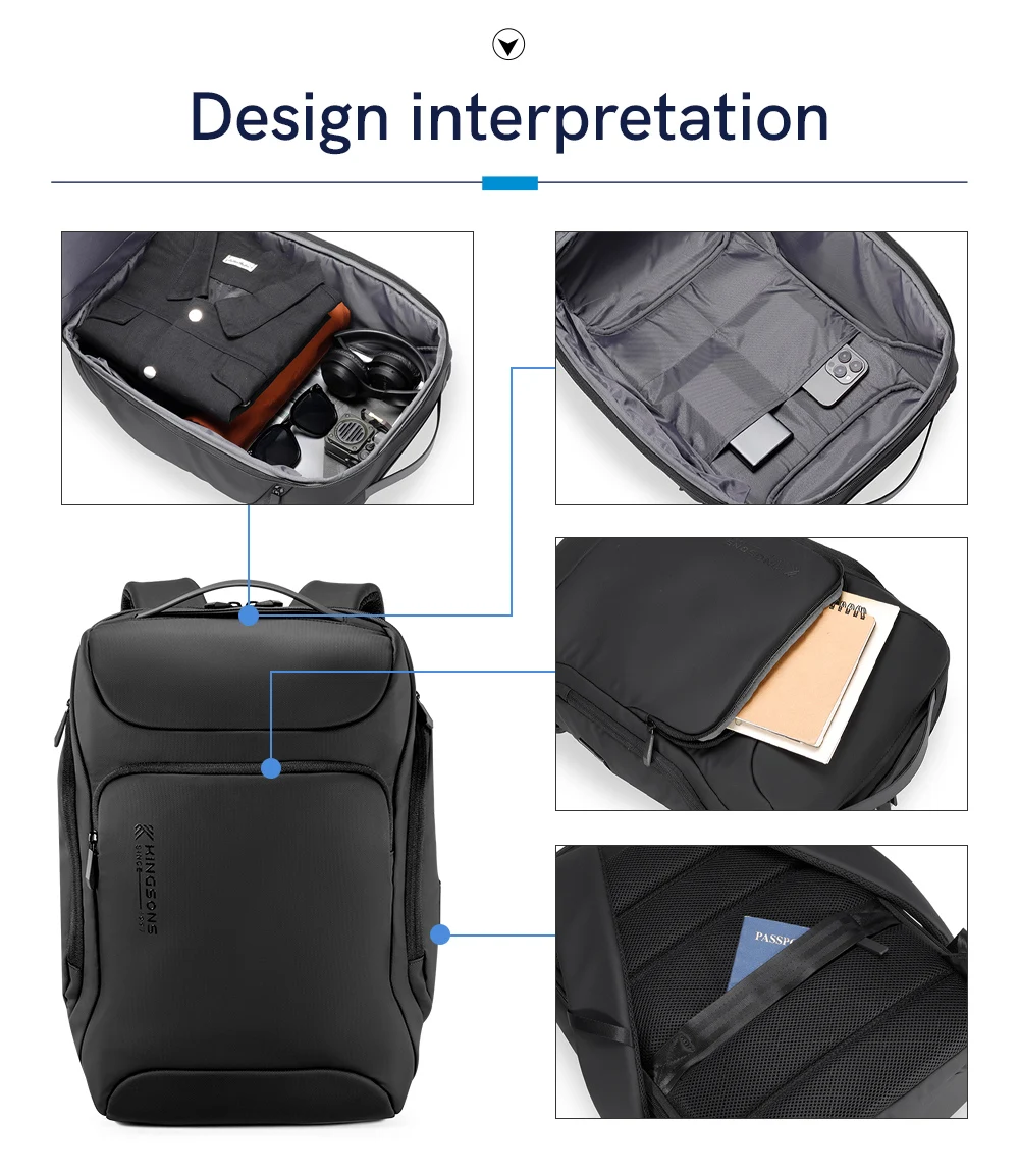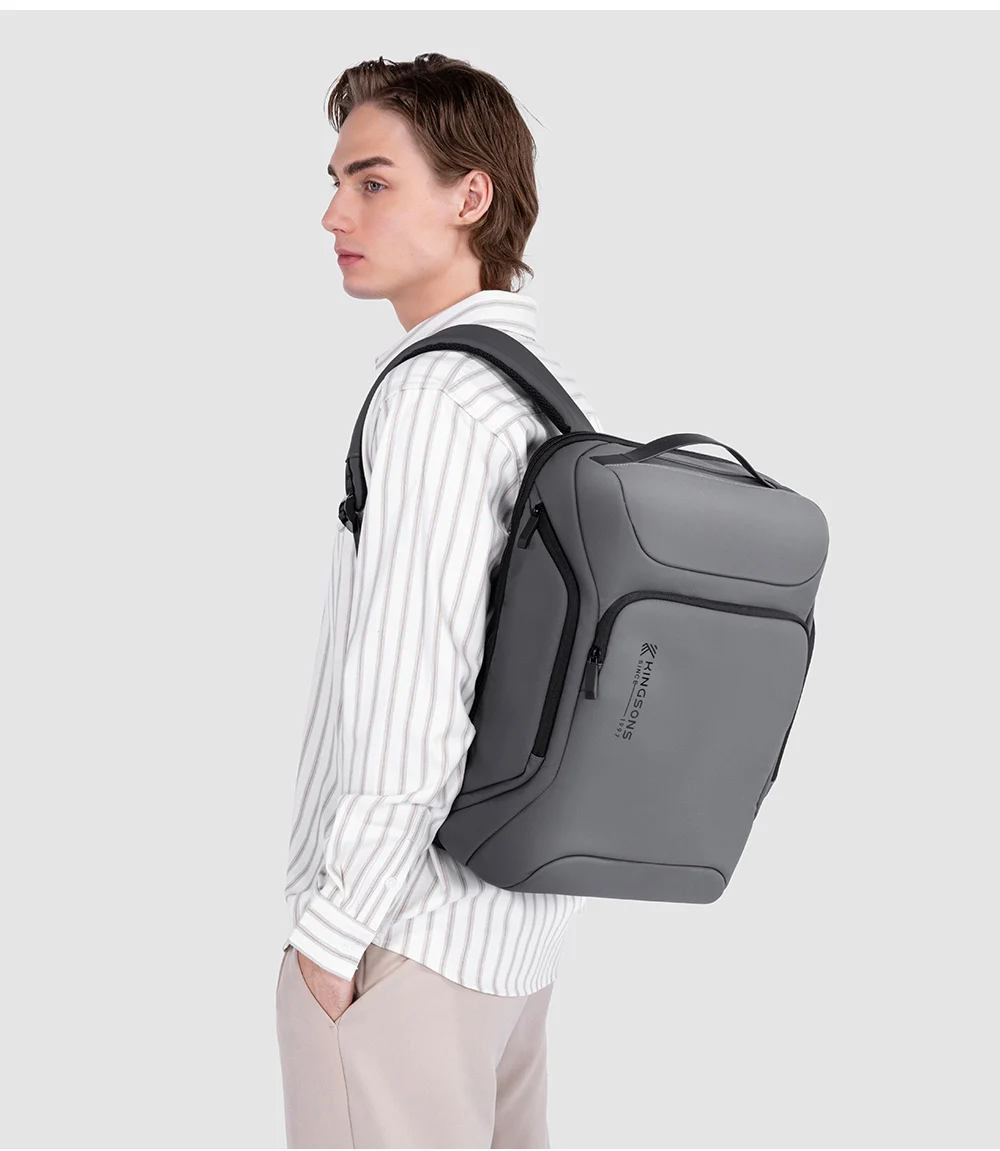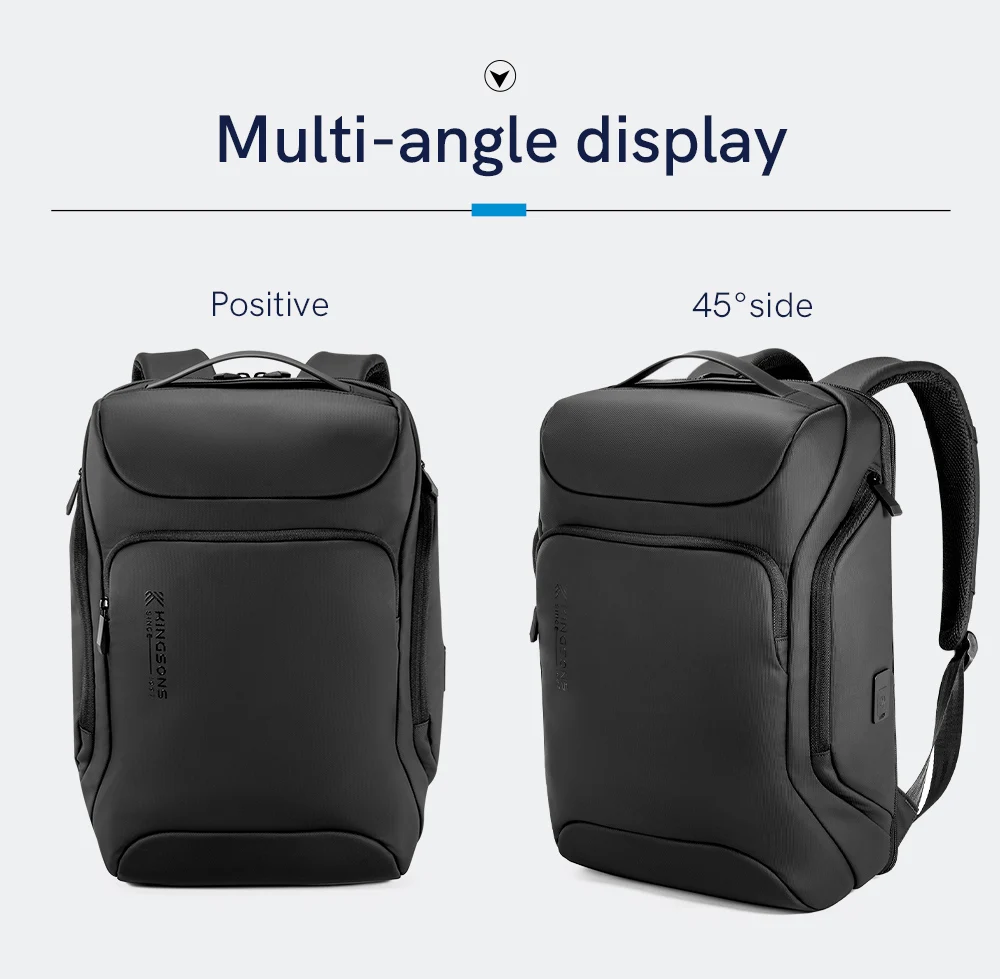 Kingsons Business Backpack For Men 15.6 inch Laptop Concise Design 180° Open Up USB-A Fast Charging Port Waterproof Black
