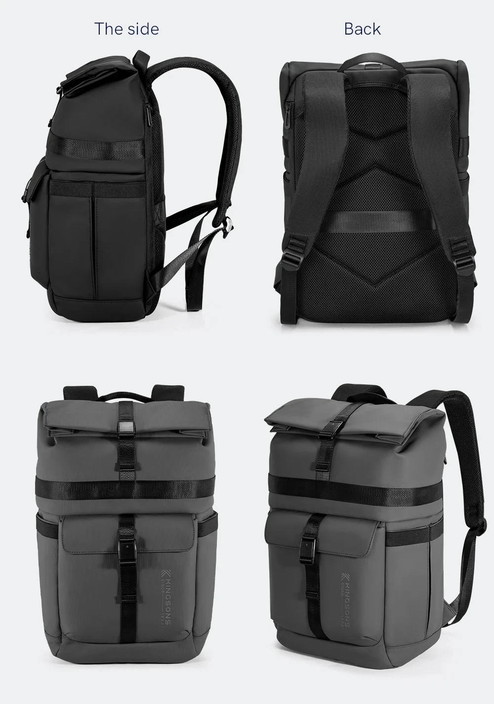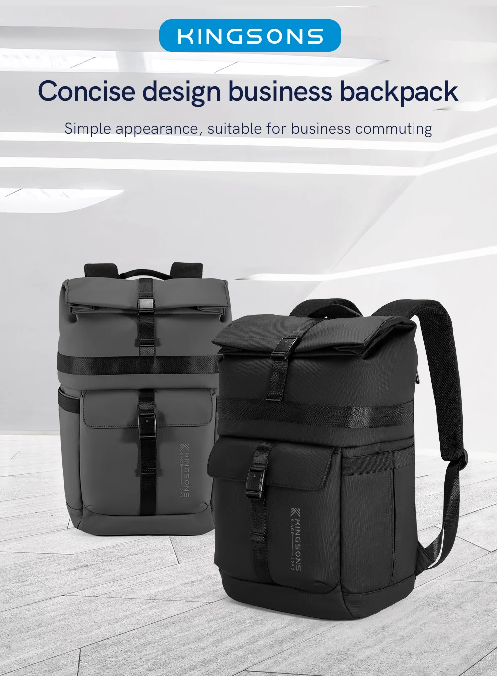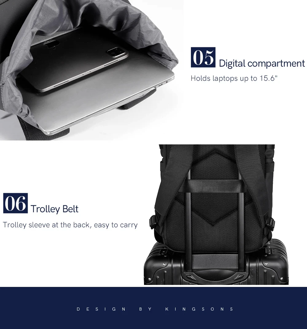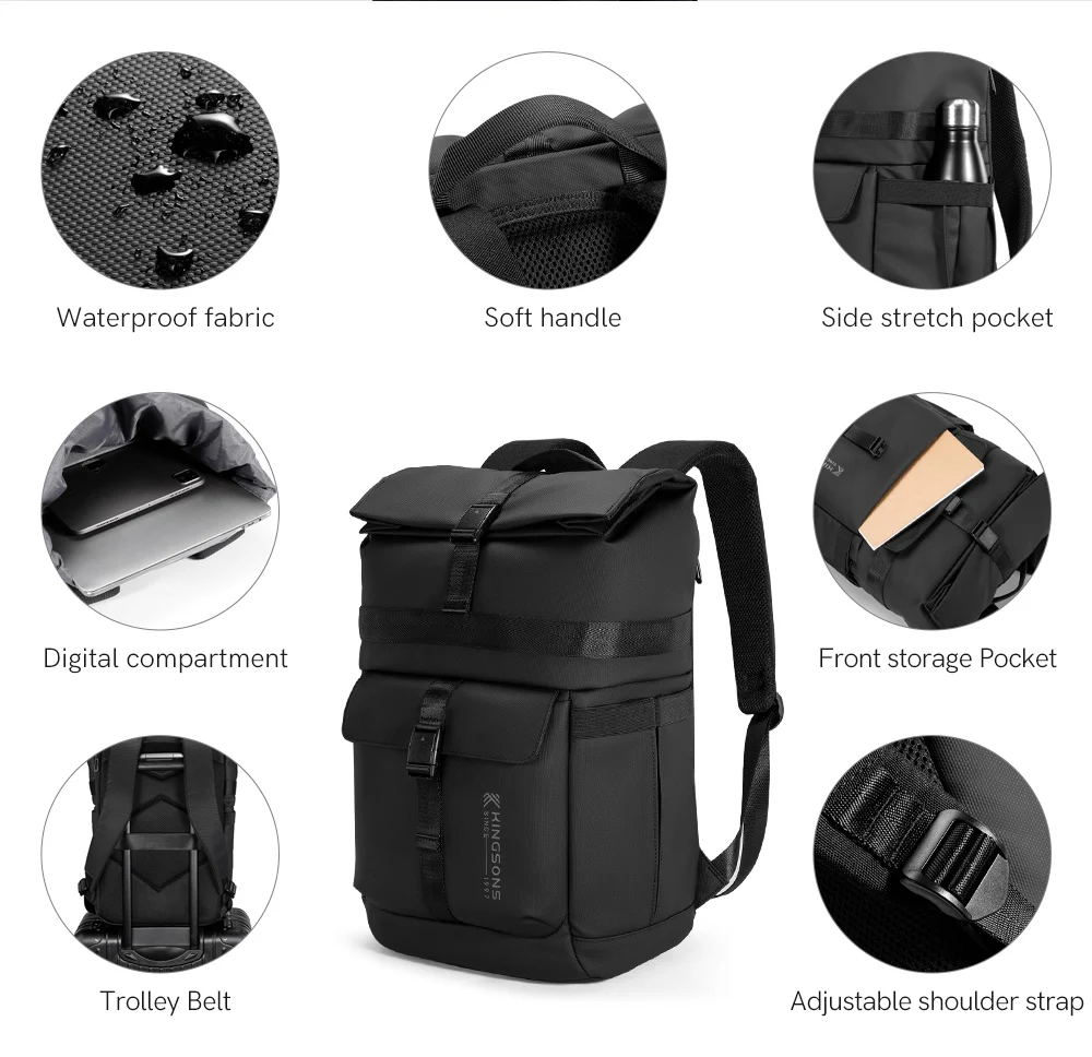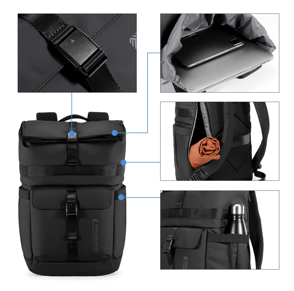 Kingsons New Waterproof Backpack For Men 15 / 15.6 inch Laptop Concise Design Business Commuting For Short Trip Black Gra
