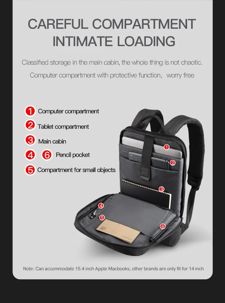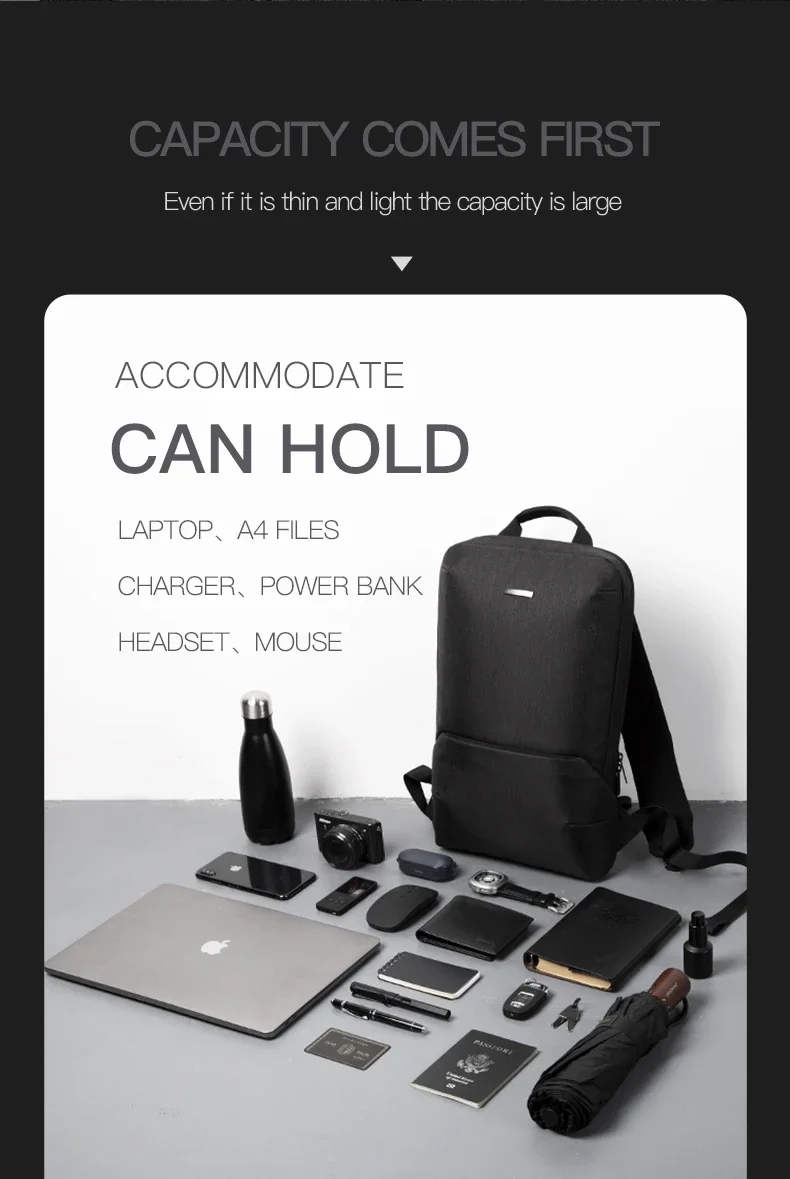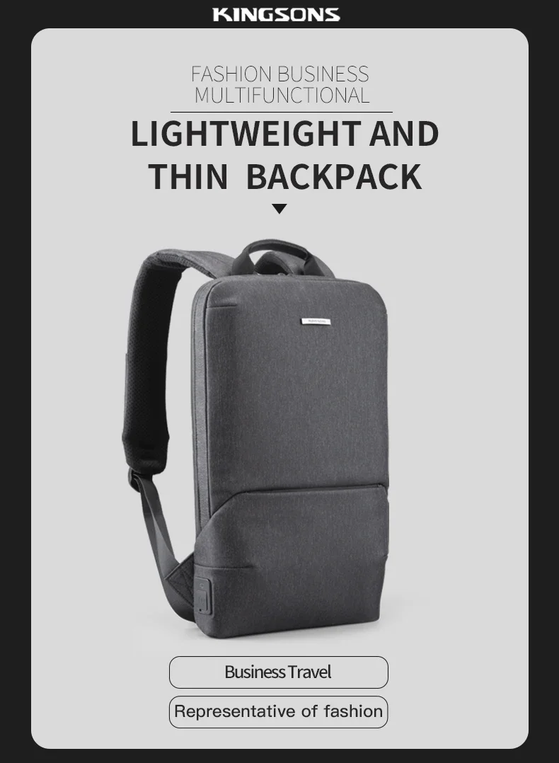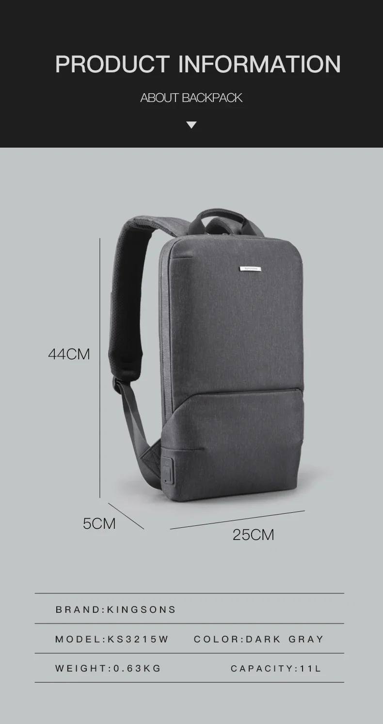 Kingsons New Thin 15″ Laptop Backpacks Men Women Business Backpack Office Work Bag Unisex Gray Ultralight Schoolbag With USB