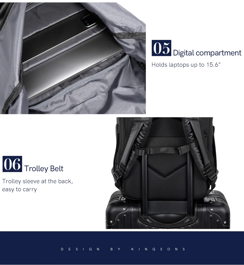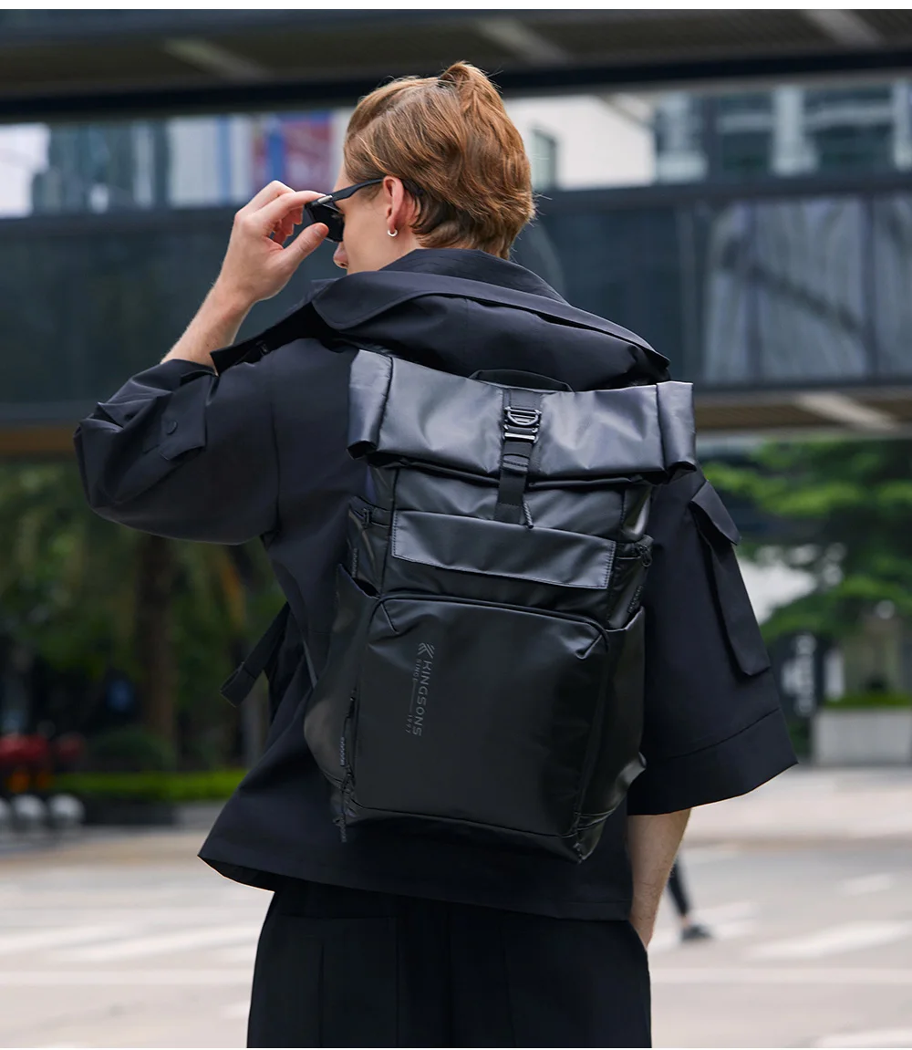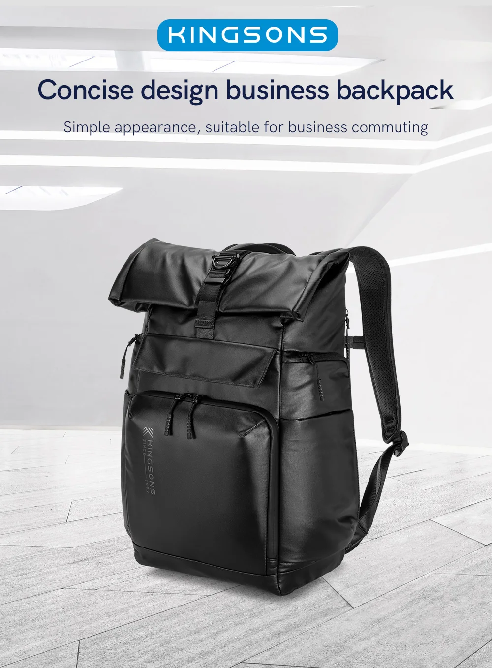 Kingsons Black Concise Design Business Backpack For Men 15/15.6 inch Laptop Waterproof College Student Boys School Bags