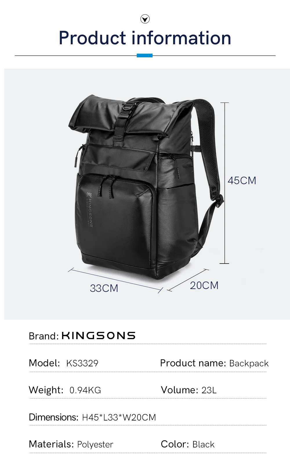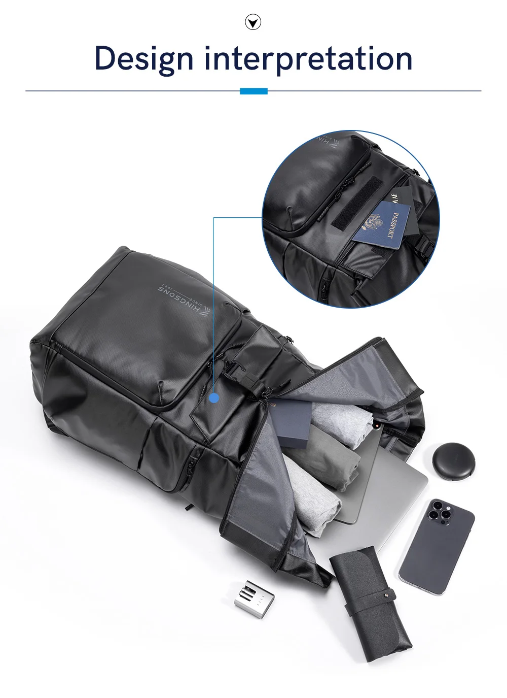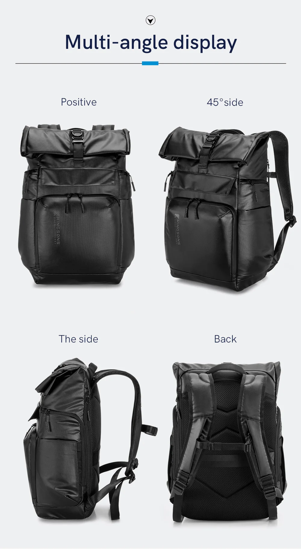 Kingsons Black Concise Design Business Backpack For Men 15/15.6 inch Laptop Waterproof College Student Boys School Bags