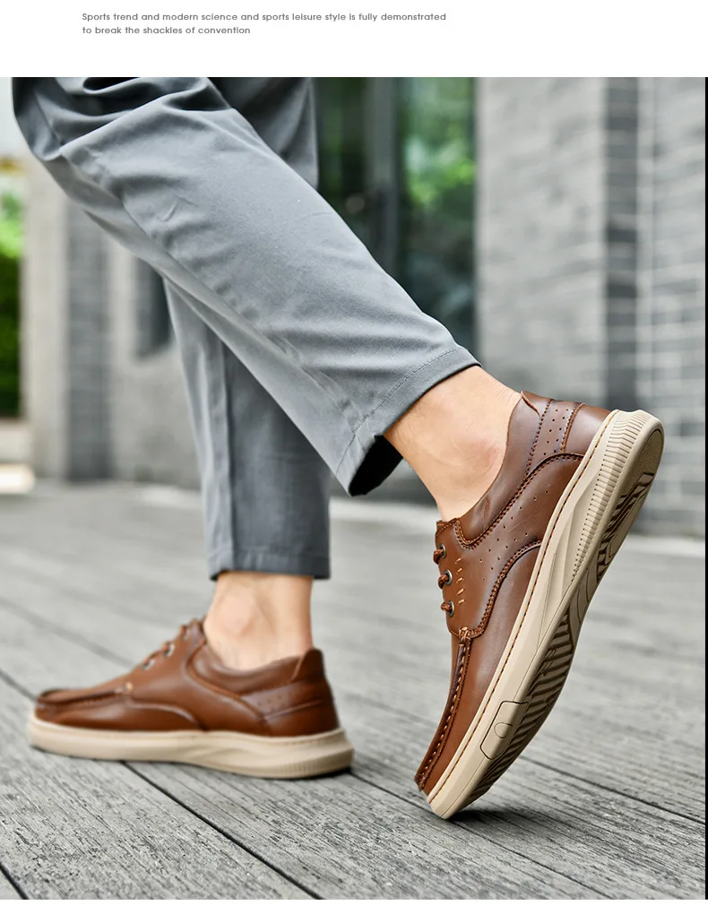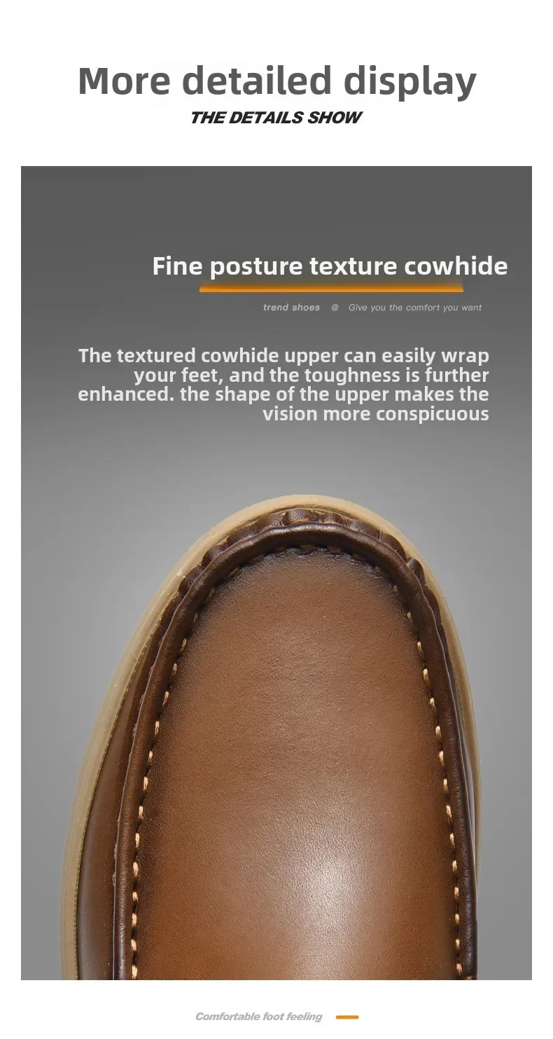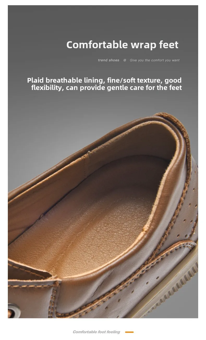 Men’s Top Layer Cowhide Leather Shoes Spring Summer Casual Men’s Shoes Soft Sole Comfortable Genuine Leather Men’s Driving Shoes