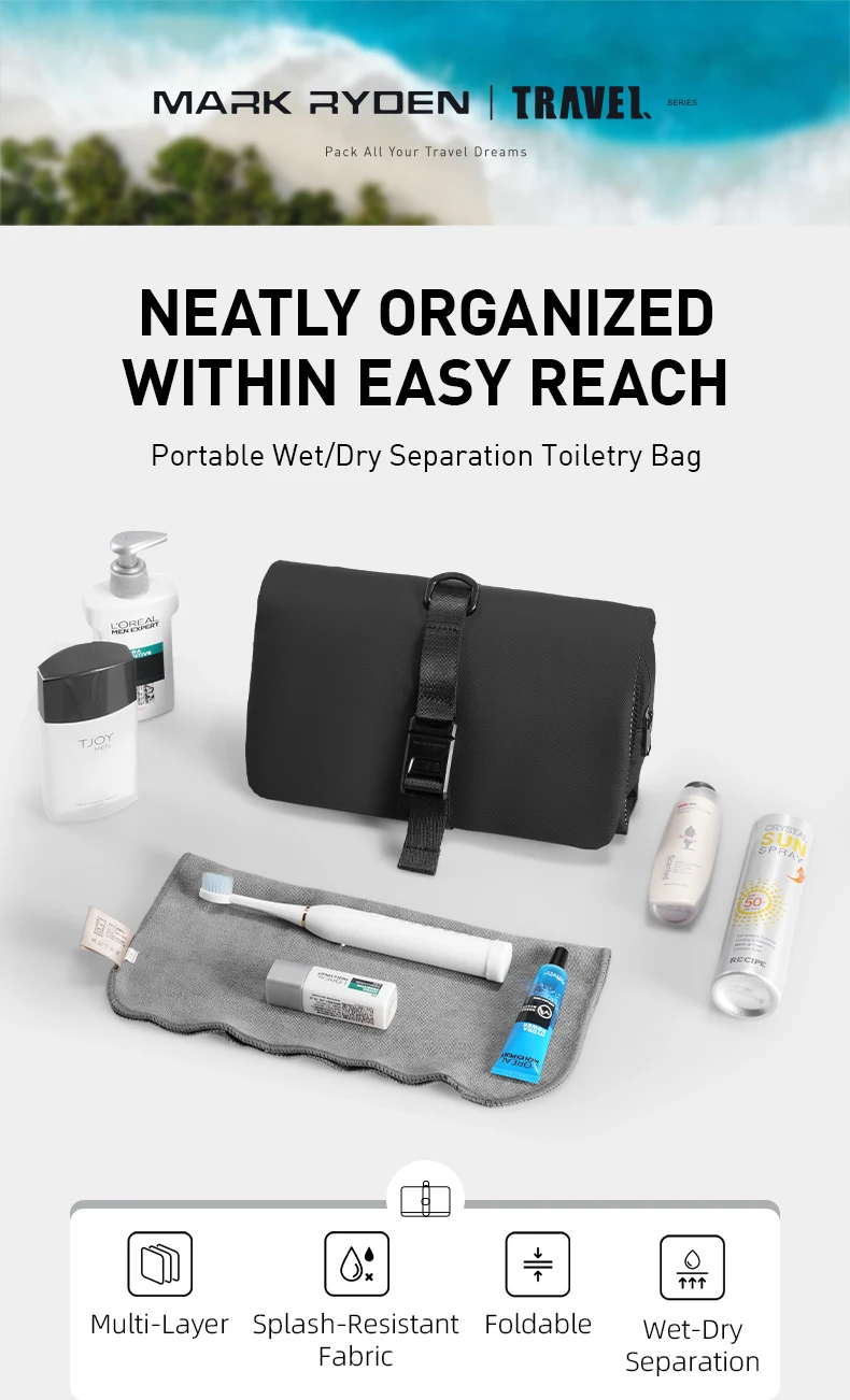 Mark Ryden MagiClip: Wet-Dry Separate Toiletry Bag with Toothbrush Holder For Daily