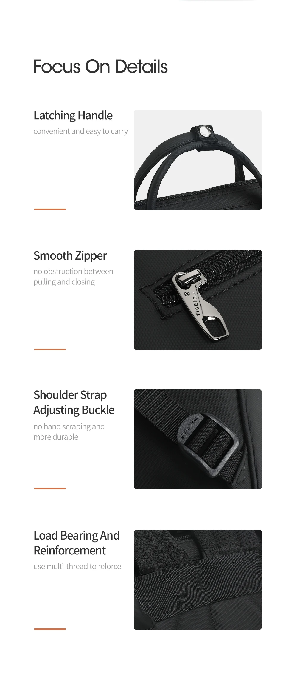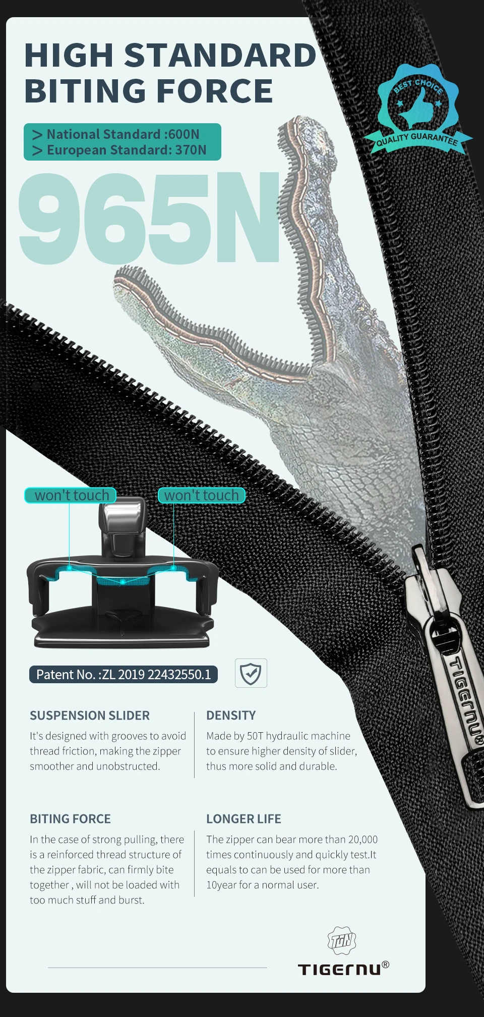 - Brand-patented innovative zipper: suspended design, reduces friction, and ensures longer lifetime.