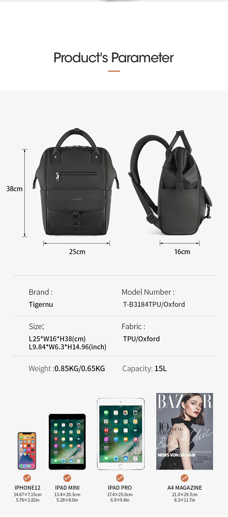 - High-quality TPU and Oxford materials: wear-resistant, scratch-resistant, and waterproof; eco-friendly fabric with no peculiar smell. Two material options available.