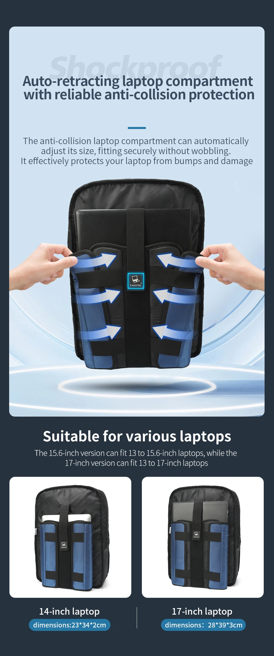 - Tigernu brand patent – adjustable computer compartment pocket. You can adjust the size and elasticity of the computer compartment pocket according to the size and thickness of the computer, making laptops more secure and users more at ease.