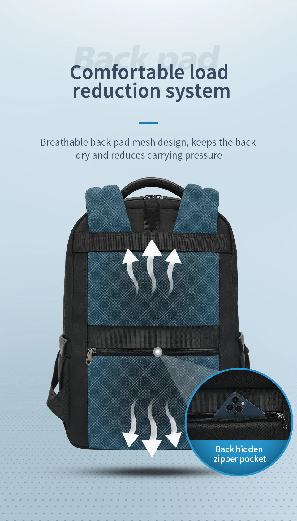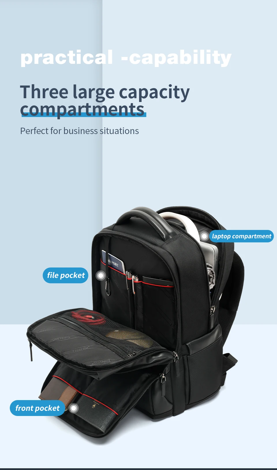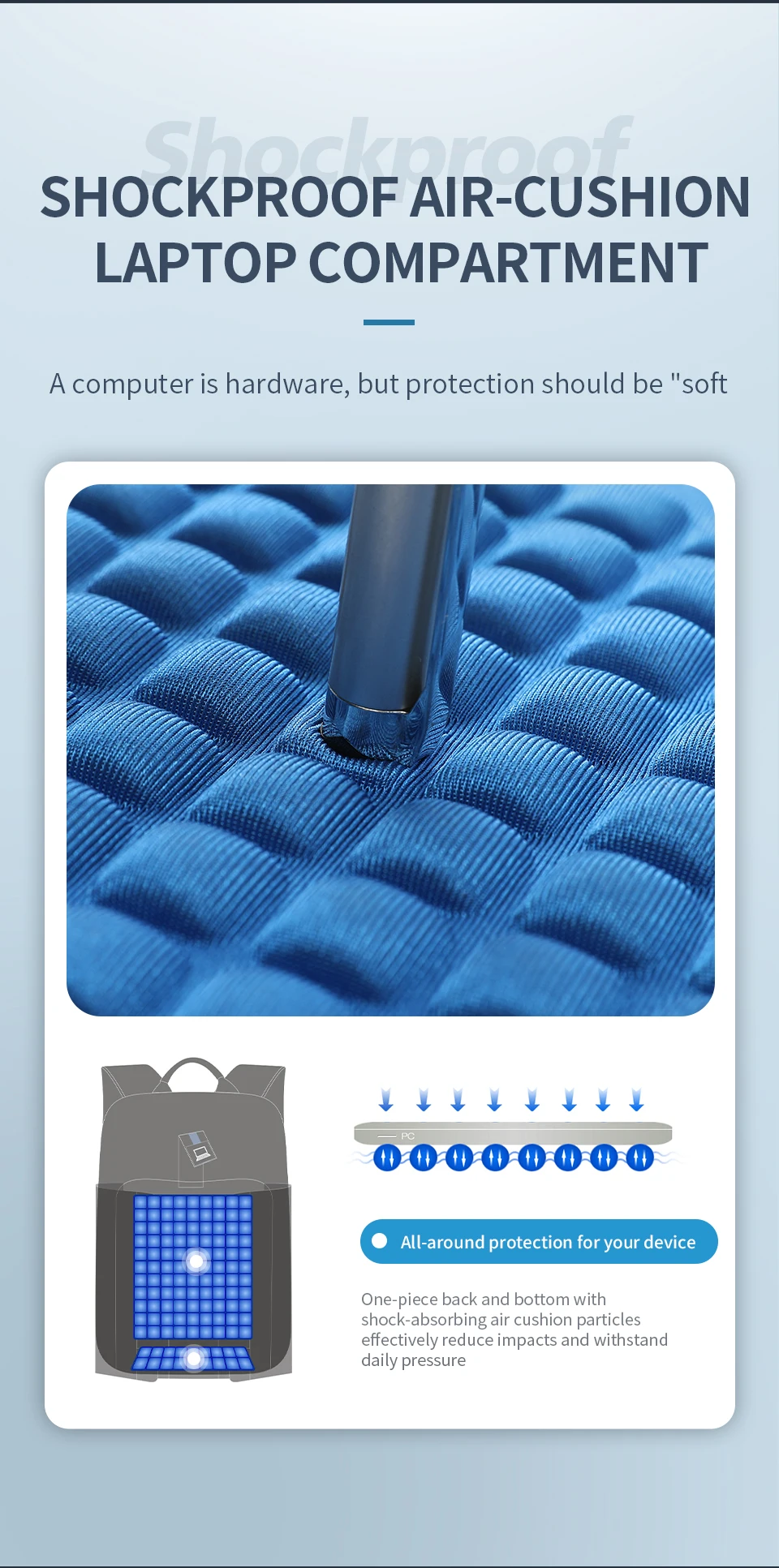 - 25L–32L large capacity design & multi-functional pockets: main compartment, independent 15.6–17 inch laptop compartment, and shockproof gasbag laptop compartment.