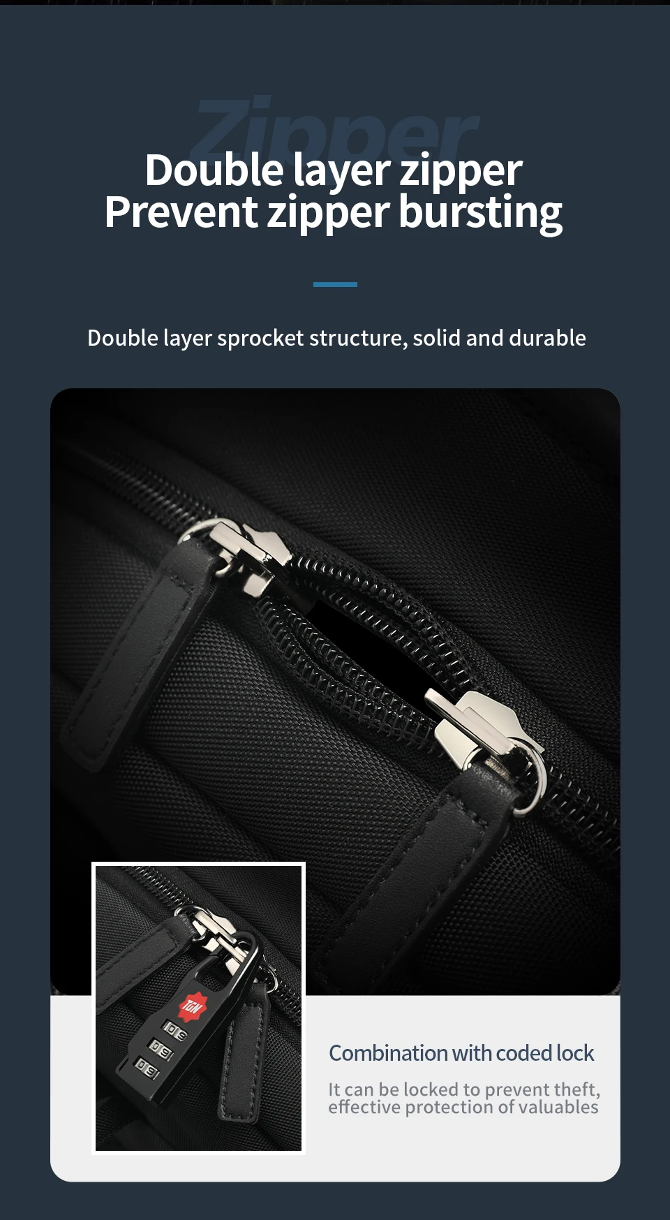 - Double-layer zipper, explosion-proof zipper, anti-theft & longer lifetime.