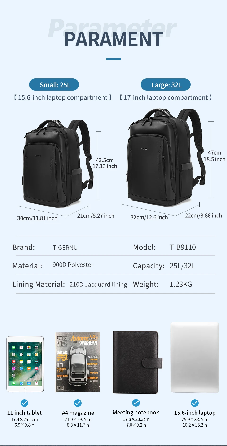 Tigernu Business Backpacks For School Backpacks Men 15.6 17inch Laptop Backpack Bags Travel Backpacks TPU Schoolbags Knapsacks
