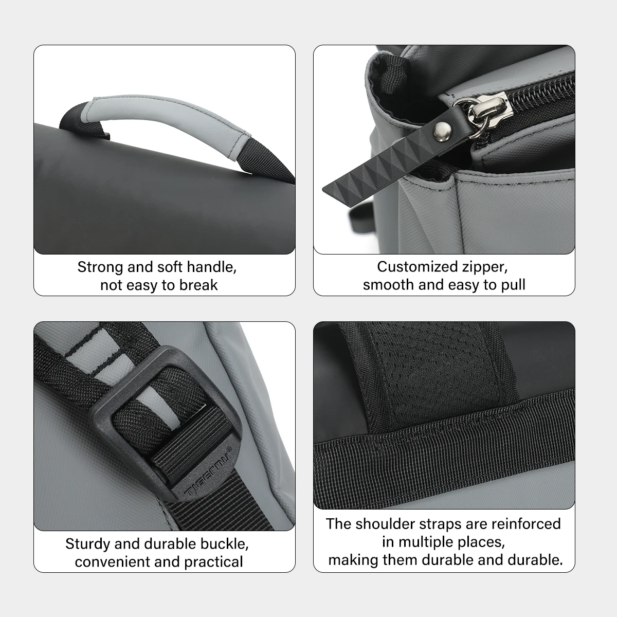- Other convenient details – side pocket, back anti-theft hidden zipper pocket, reinforced shoulder strap, etc.