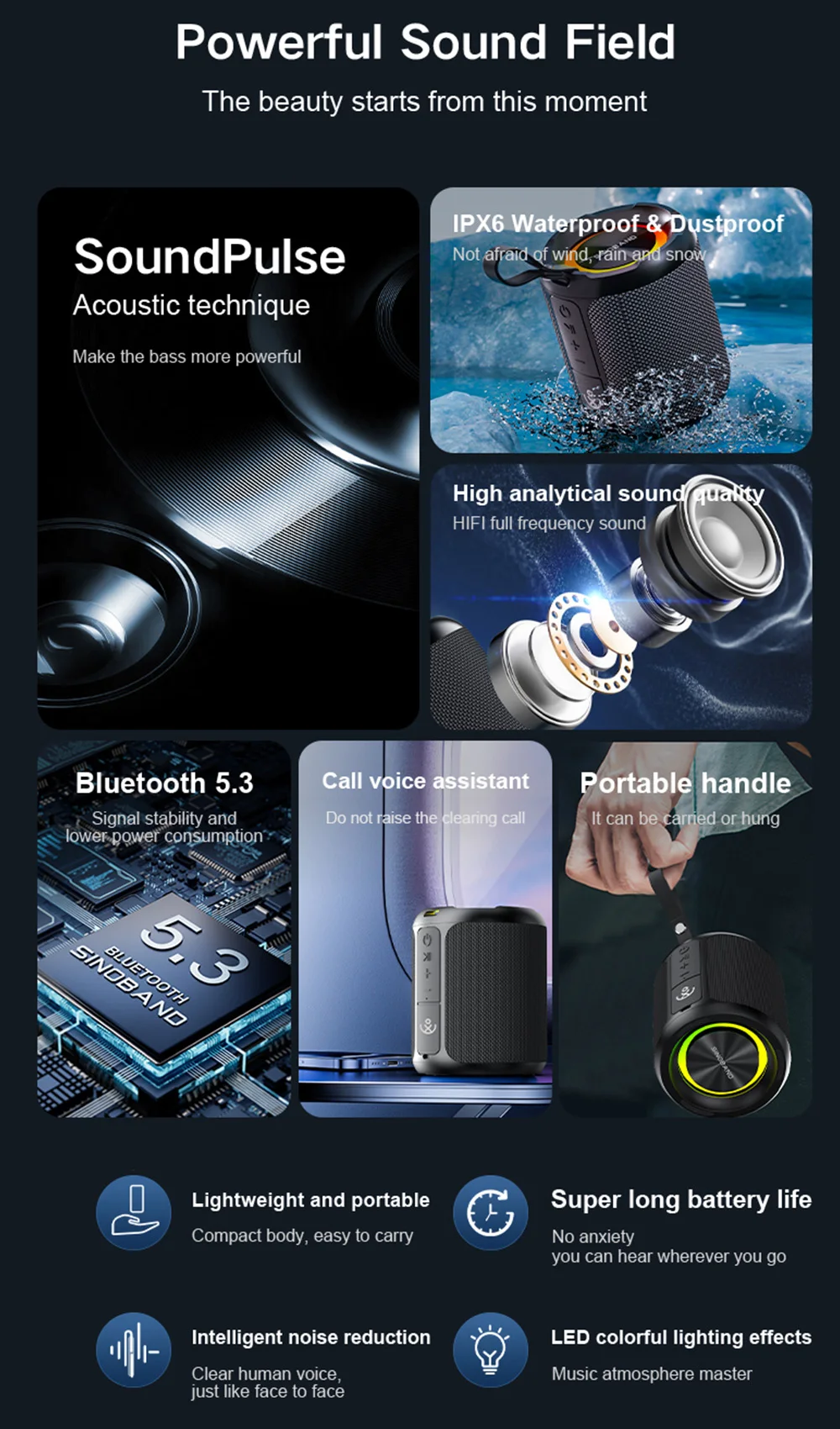 - The portable design of this speaker makes it perfect for outdoor fun. Its compact size and lightweight design make it easy to carry along for camping, parties, or any other outdoor adventure.